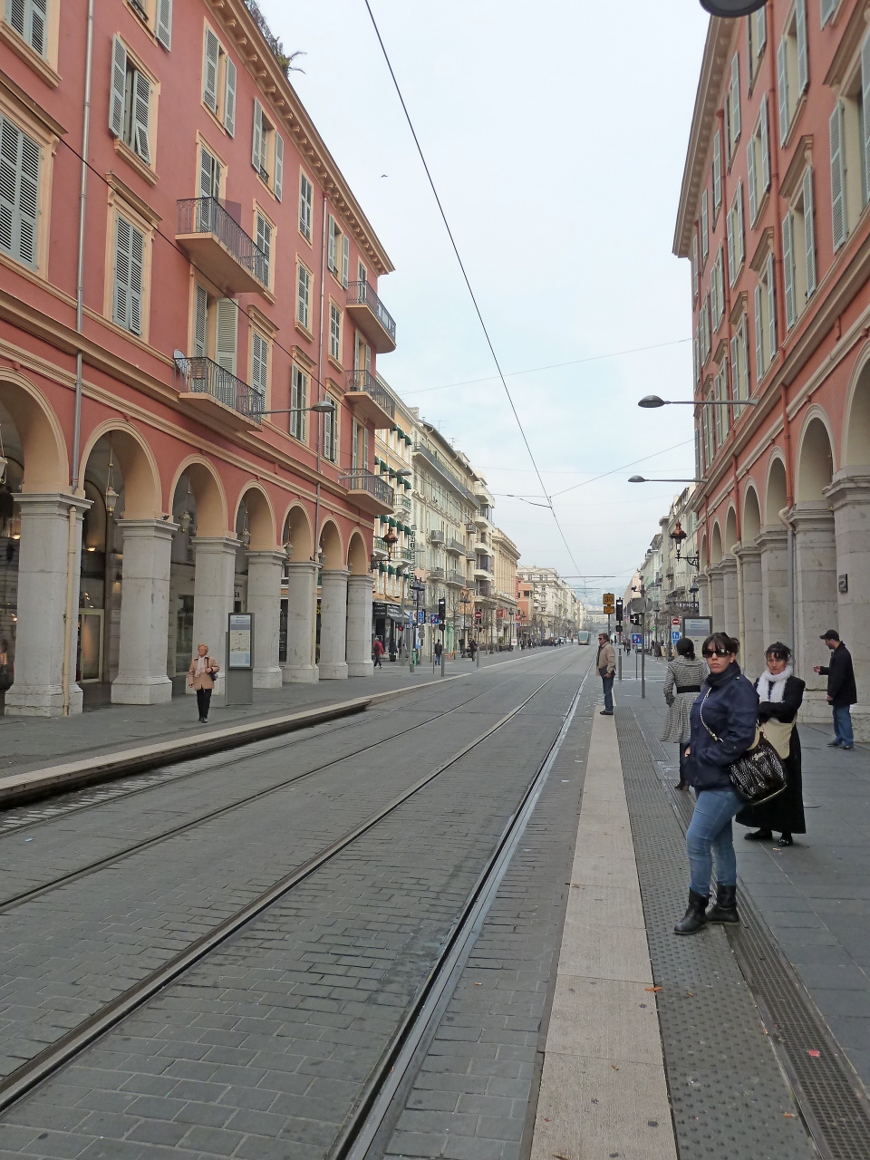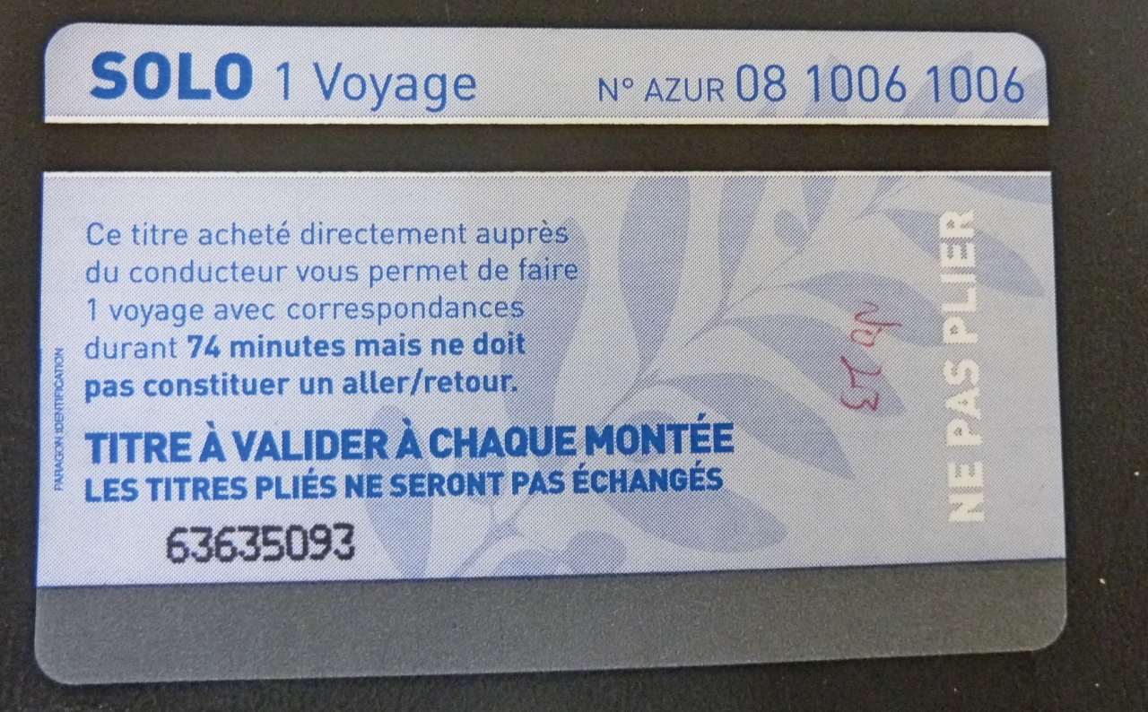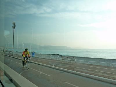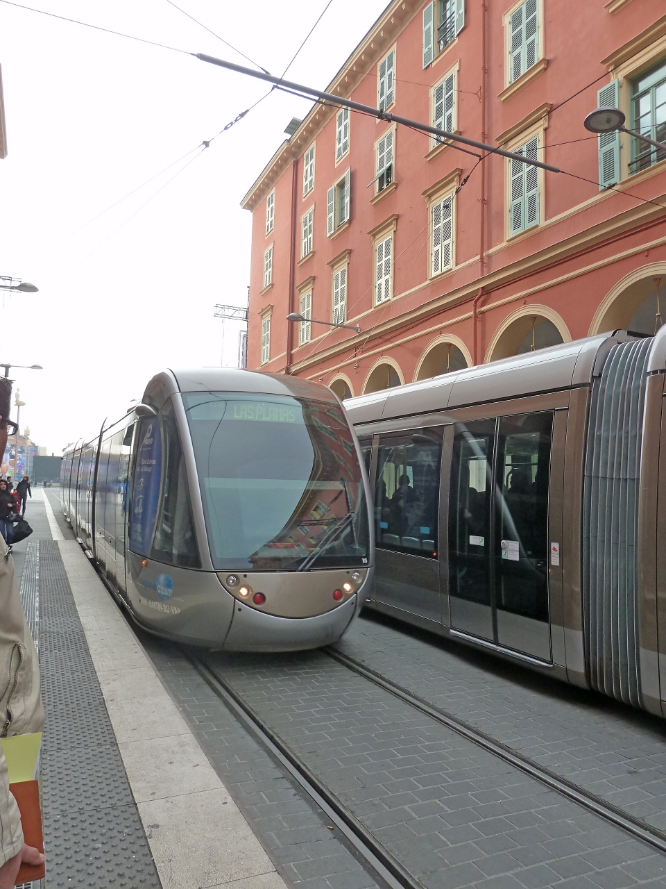 ニース空港から市内へのバス,バス98番は20分おきの.4ユーロだが,一日使えるパスでくれるので,それからは,トラムも含めて,乗車券を買う必要はない.普通のバスだと1ユーロ(23番).空港バスの方がメインロードPromenade des Anglais を市内まで直通するので速い.23番は帰りに利用したが,旧道を停まりながら空港へ.Nice Ville駅からは23番がメインのようだ.98番シャトルバスでアレベール1世公園前まで20分.23番で駅から空港まで30分弱.このバスも15-20分おきに出ている