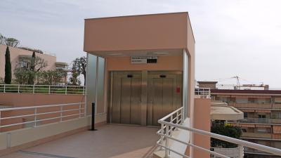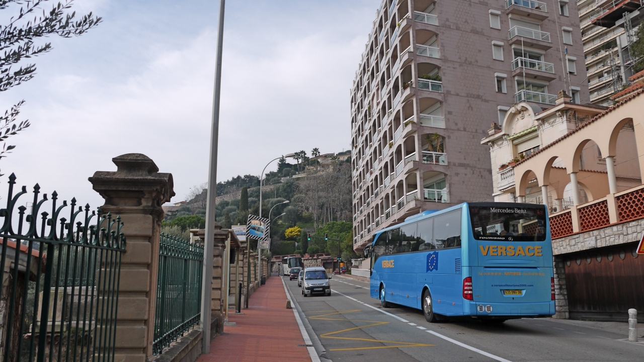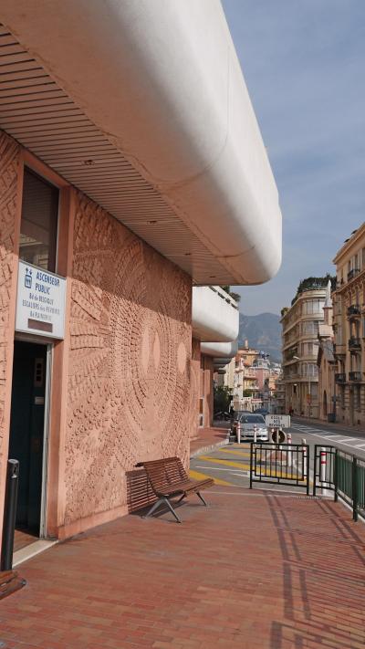 Monaco Monte-carlo駅のMonaco Ville側の出口から,地図上ではわずか直線300m.しかし丘というよりは山の上,案内板通りに歩きつつ,公衆エレベーターを3台乗り継いで,徒歩20分の距離.バスを待つ手もあるが,案外公衆エレベーターを使えば,それほど徒歩での階段登りは少ない.工事中の箇所もあり,袋小路の道に注意!