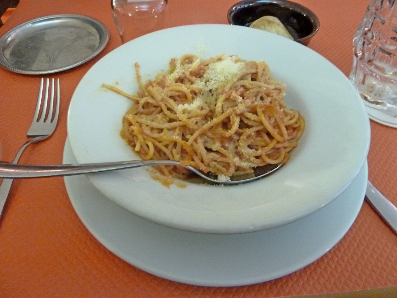 大公宮殿からコントフェリックス通り(だったと思う)3分くらいのところにあるLa Tavernettaという店があった.中に客も入っているので,悪くはないだろうとおもって入った.雰囲気はなかなかいい.ビールとスパゲッティマルゲリータ.アルデンテでなかなかおいしい.合格.10ユーロ.観光地だったが悪くなかった