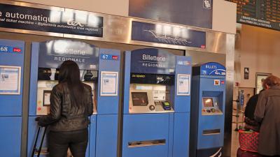 1ユーロで乗れて楽しい,空港からのシャトルバス1日券で乗れる.停留所に自動販売機