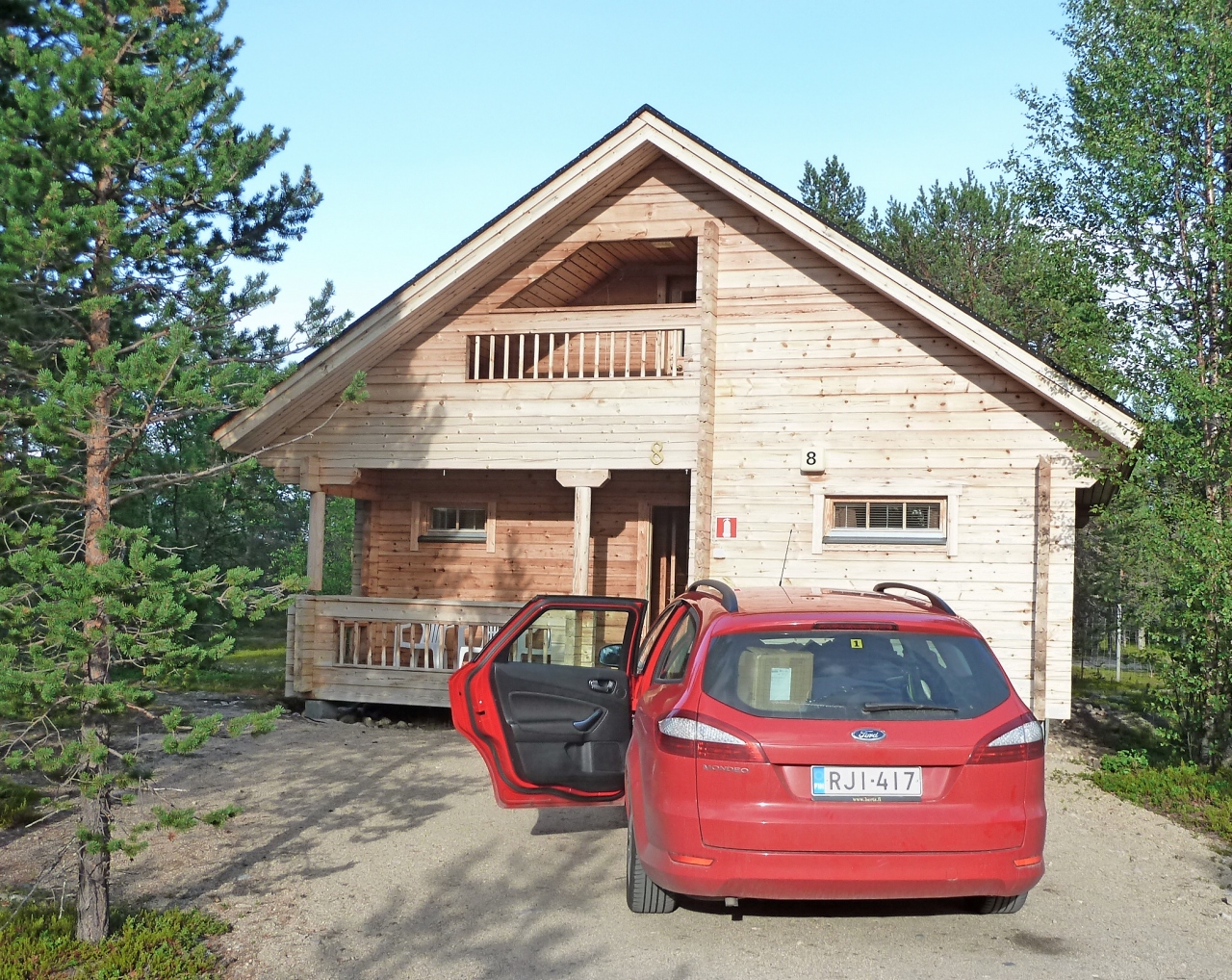 Enontekioの休暇用コテージ(lomamokki).湖には面していないが,設備は最高.1泊一泊88ユーロ,リネン6ユーロ,計18ユーロ,総計106ユーロ,一人4000円弱.http://personal.inet.fi/yritys/ounasloma/home.htm