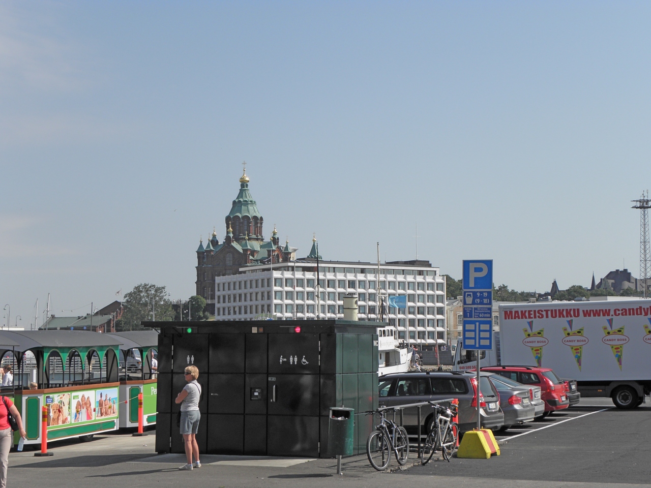 マーケット広場でトイレに行きたくなったら,マーケットホールの前に緑のといれがある.小用側は無料.マーケットホールのトイレは使えないので非常に便利.