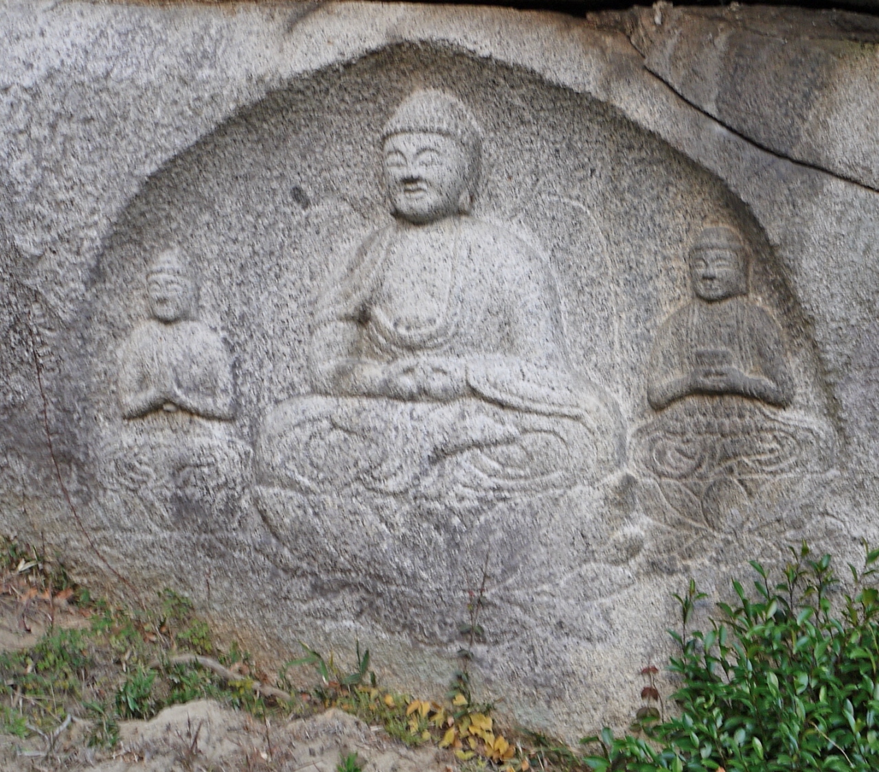 奈良奥山ドライブウェイの途中,滝坂の道から入ったところに,地獄谷石窟仏がある.薬師如来,中央盧舎那仏,十一面観音がまだ色が残っている.奈良時代後期から藤原時代のもの.すばらしいの一言!