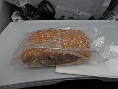 私はいつもはスターアライアンス利用だが,10年ぶりにFinnairを利用.めちゃくちゃ食事が悪い.朝食はパン一つ.あのサービスの悪いSASよりも落ちる.ルフトハンザやスイス航空,オーストリア航空の方がずっといい.映画の選択も少なく,飛行機の中でフィンランド語が使える以外のメリットは全くない.便利さは取り柄だが,サービスも旅の楽しみの人にはお勧めしない.写真が朝食!