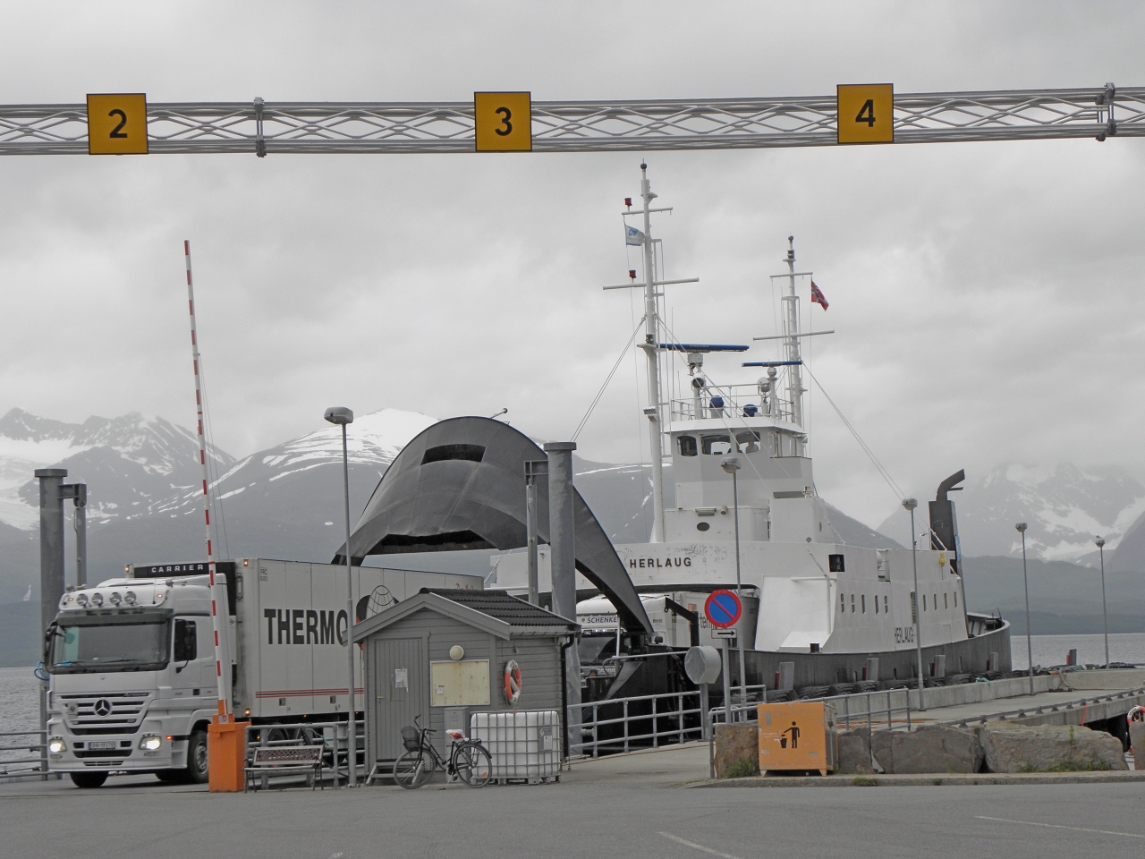 TromsoからAltaに向かうとき,2つのフェリーを乗り継いでいく.Olderdaren-LyngenseidetとSvensby-Breivikeidet間だ.今回はそのうちの最初の区間だけ乗る.Ferryの区間を除いて,44kmの道のりを(Ferryは約19km)164kmと遠回りすることになる.時刻表と案内はhttp://www.bjorklid.no/index.php?option=com_content&task=view&id=70&Itemid=42