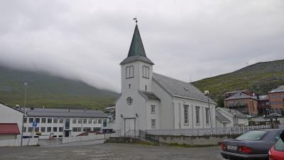 ホンニグスヴォーグの町の奥にたたずむ教会.極北の山々に良く合う雰囲気.ラップランド戦争の空襲の中で残った教会,戦後の復興も町と共に歩んだ.かわいい教会で気に入って今回3回目の来訪.ホニングスヴォーグに寄るのなら是非行って欲しい.