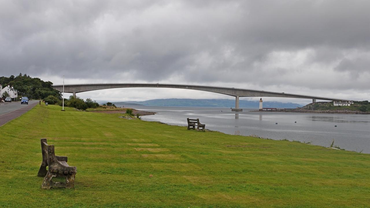 Kyle of LochalshからSkye大橋を渡った対岸のKyleakinからの風景は橋も含めとても良い.Portreeに行く前に是非寄りたい場所だ.橋をわたったロータリーを500mばかりはしるとKyleakinの海岸縁の町に出る.近くにMoal城という城もある