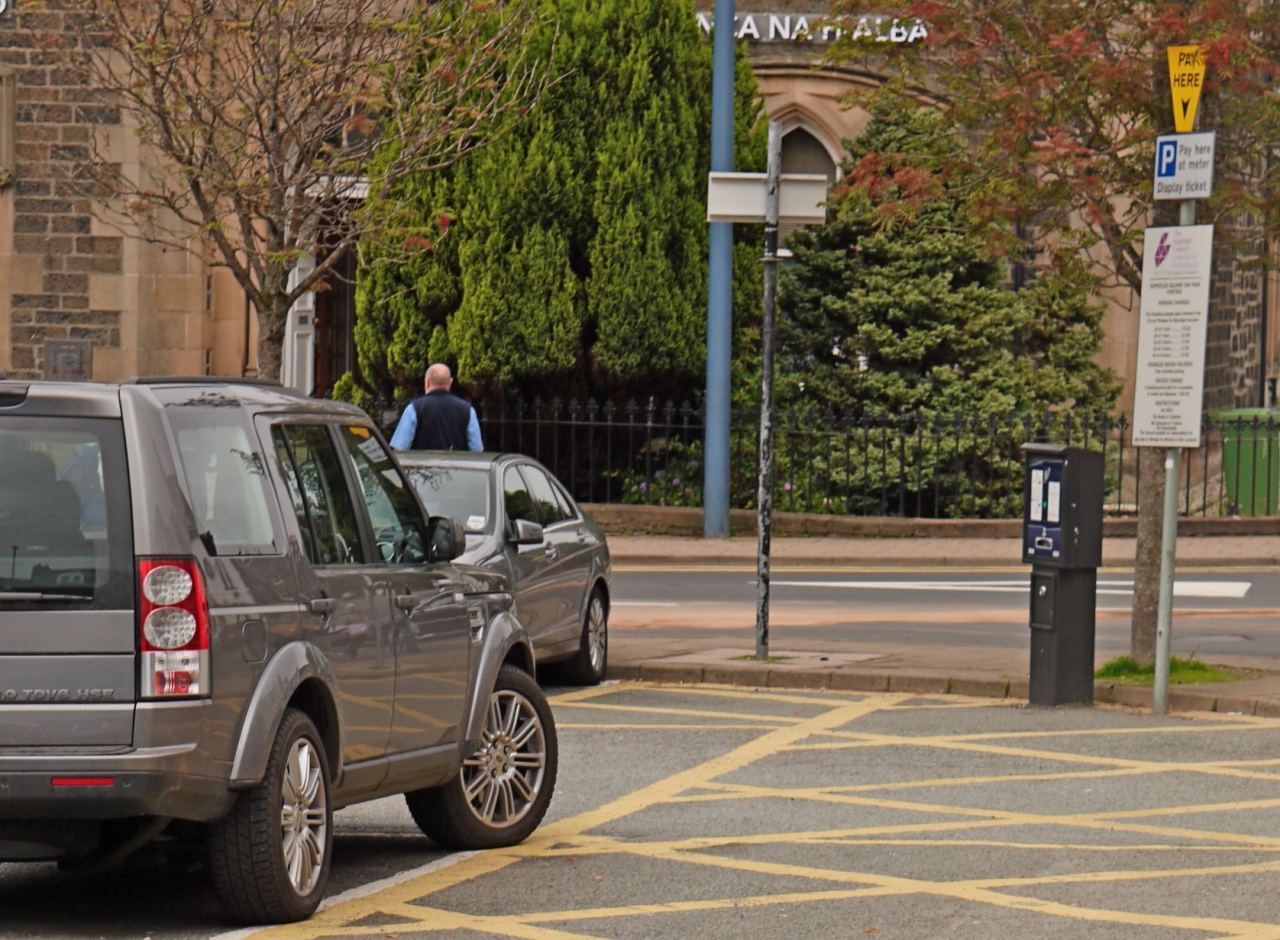 Portreeの広場には駐車場があるが,有料.販売機にコインを入れて時間が書いた駐車券を買い,フロントに表示.30分.0.2ポンドととても安い.写真が販売機.