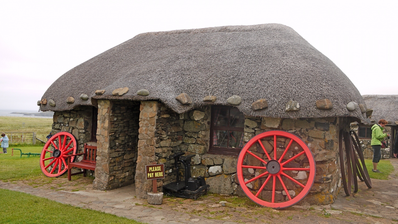 スカイ島最北周りは何もない荒涼としたところにぽつんと博物館がある.荒涼とした吹きさらしの高台の野外博物館.かつての建物が集められている.きびしい18ー19世紀の島暮らしがよくわかるようなシチュエーション.2.5ポンドと入場料も安い.島の厳しさがよくわかる展示だった.売店も小さいが質のいいお土産が多い.