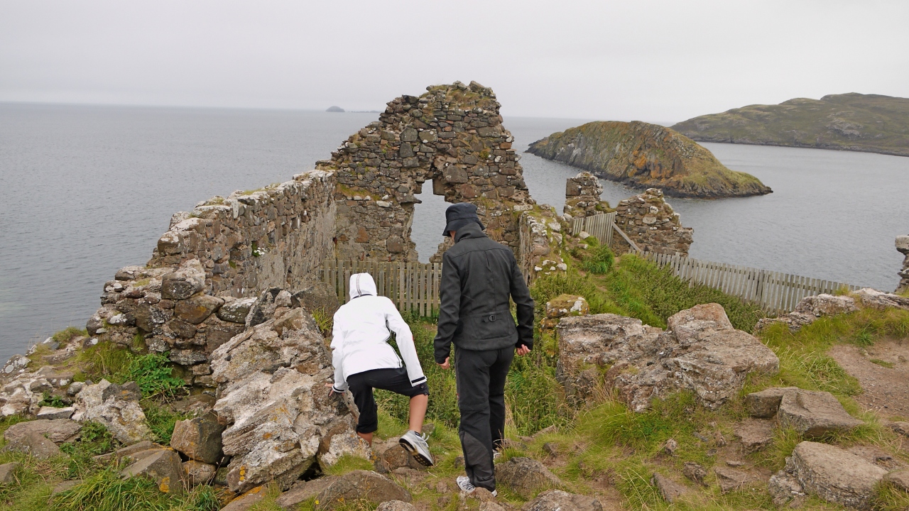 Dantulm城についた.岬の上の廃城を見る.荒涼としたスコットランドの廃城!すごいね!Skye島の最北端は厳しい岩山が連なるなかにある廃城!厳しいスコットランドの歴史に思いをはせる寂しい場所だ!