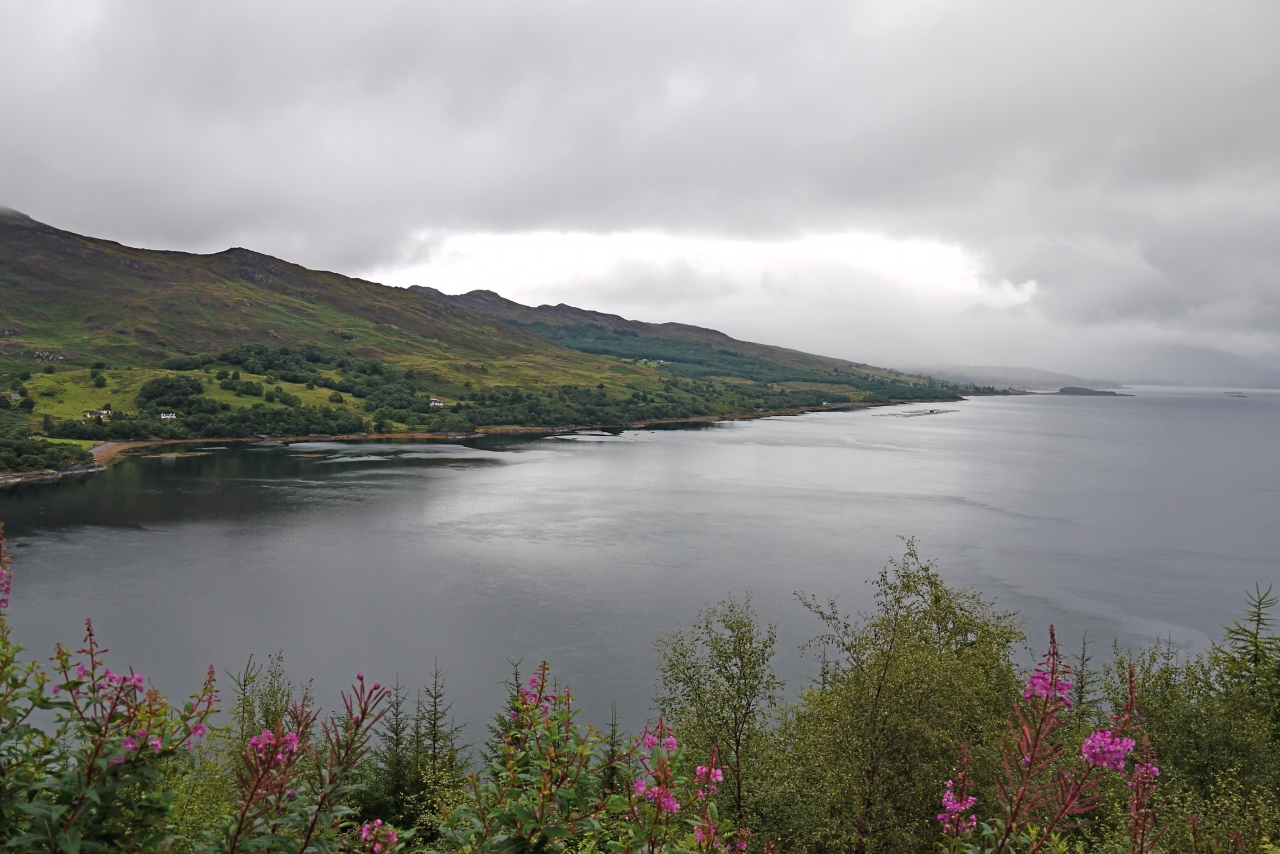 A890号線InvernessからKyle of Lochalshに至る道,特にLoch Dughaill付近はハイランドらしい風景が続く.私の行ったときは天気が悪かったが,もし天気が良ければ最高の風景.Kyle of LochalshからA890号線で30kmくらいいったところ