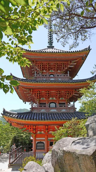 瀬戸田の青い海に映える,朱の三重塔.コントラストも抜群.優美な塔だ.この高台からの海の景色もすばらしい.1432年(永亨4年)に建てられ、 国宝の三重塔の中では最も新しいものだそうだ.入場料はないが,募金箱があり,100円以上を目安に,文化財保護募金をする形式. 必見!