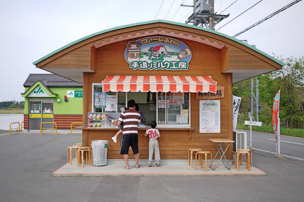 駐車場にあるファームあわら,手作りミルク工房.ここのソフトクリーム,牛乳の味がしてとてもおいしい.買い物もソフトも絶対の穴場!- 旅行時期