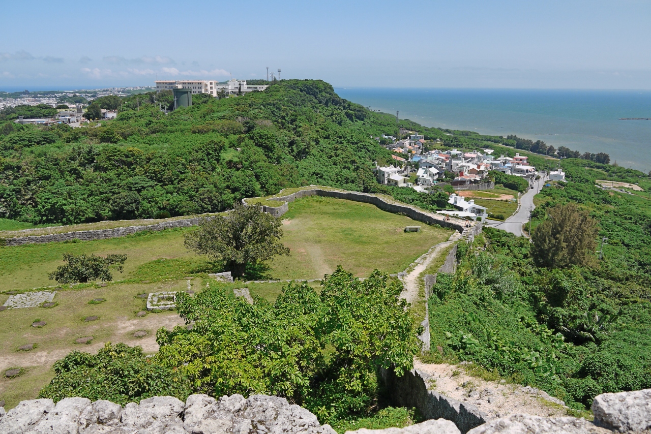 やはりすばらしい城跡だ.標高100mあるので,登るのはけっこう大変だが,一の曲輪からの眺めは最高.三山時代から中山の王権確立までの,英雄時代へのロマンを感じる場所だ..「この城の最後の城主が阿麻和利である。阿麻和利はクーデターを起こしてこの地方の按司となり、琉球の統一を目論んだが1458年に琉球王府によって滅ぼされた。城内からは中国、元代の陶磁器(染付)が出土しており、『おもろさうし』からも当時の繁栄をみることができる。」Wikipedia