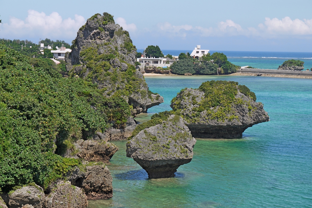 この小島,浜比嘉島に入り,左折して比嘉漁港の手前にある.沖縄の祖神,イザナミにあたるアマミチューの墓がある.小島だが,岩もうっそうとして,神々しい雰囲気.必見の島だ.