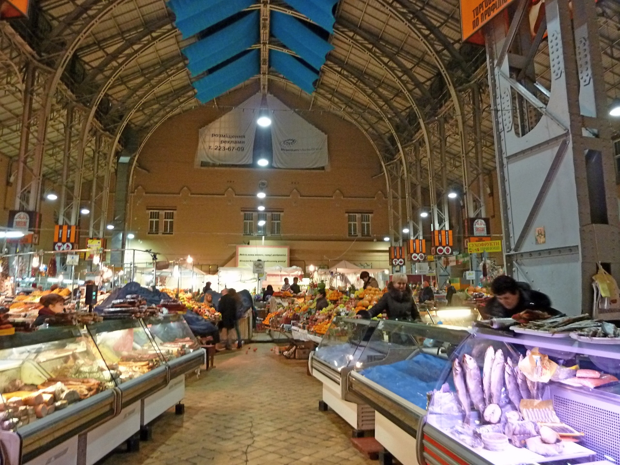 キエフの胃袋,ベッサラフスキー市場は,肉,野菜,花,ピクルスなどいろいろなものを売っていておもしろい.怖い感じもなかった.お土産になるものは少ないが,キエフの普段の顔をみるには一番いいかも.
