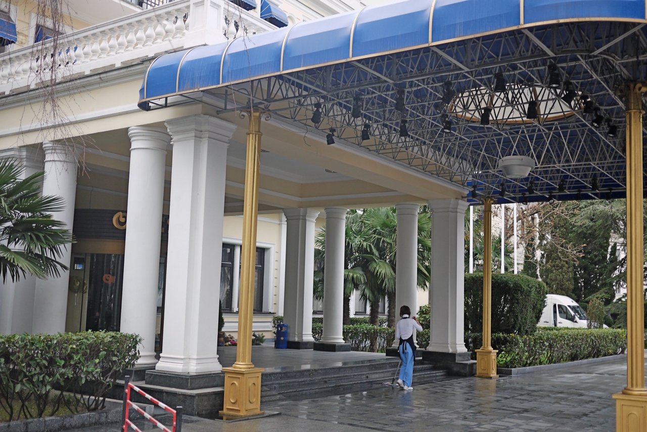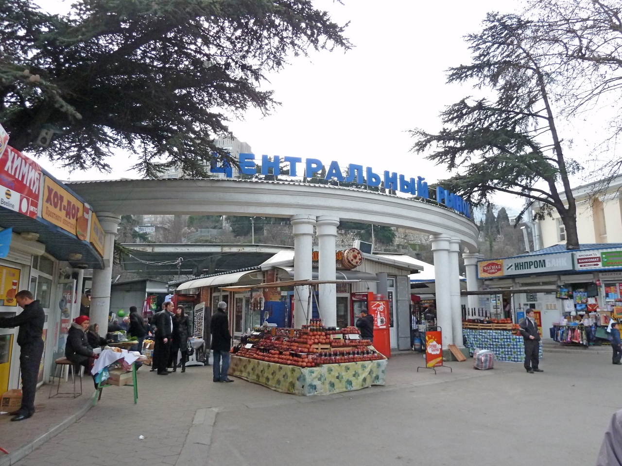 ヤルタは高級リゾート地,最近の乱開発によって1970−1990年代の「熱海」化しているが,市場に行くと本当に庶民の生活がわかる.活気にもあふれている.お土産にするようなものは少ないが,ピクルスや果物はおいしそうだった.中のレストランも,肉の串焼き(鉄のくしだが)やスープがおいしかった.海岸よりキエフ通りをバスターミナルの方向へ5分くらいいった左側.写真は正門
