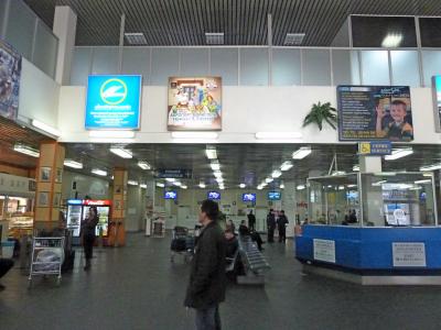この空港,小さい空港なのに,ターミナルが国際線と国内線に分かれている.到着は国内線ターミナルだったが,出発はなんと国際線ターミナル.小さなA4の紙にウクライナ語かロシア語でしか書いてなかった.まわりはがらんとして聞く人もいなくて,少し迷う.外に出てから空港職員に搭乗券を示して,聞くとわかると思う.
