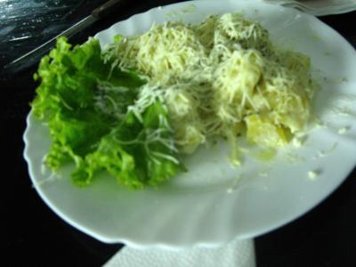 ここのPOTATOES WITH BLUE CHEESE AND SOUR CREAMは絶品!他の料理も安くておいしい.25-40LVで十分.ホームページはhttp://www.mr-pizza.info/