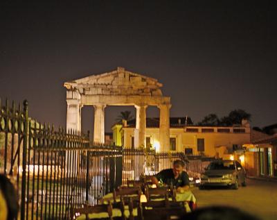 夜景で見るパルテノンは最高だが,このタベルナの外のテーブルからのパルテノンはローマンアゴラの先に見えて最高の景色,食事もまあまあで高くなくお勧めのタベルナ.モナスティラキ駅からアレオス通り,ローマンアゴラの北の柵を右に曲がったところ