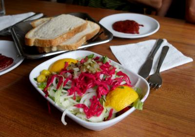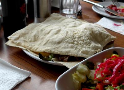 何とかケバブという名前がついていたがすべて忘れてしまった.イチリキョフテとおもわれるキョフテはコロッケみたいでおいしい.肉肉のオンパレードだが,香辛料や油が控えめで,素材の味そのものなのでけっこう食べられる.おいしかった.最後にチャイ.びっくりしたのがその料金!これだけ食べて全部で100リラちょっと.すげえ!一人500円だ!.アルコールが飲めなかったことが同僚には残念だった.地方のレストランだとアルコールが飲めないのに悩まされる