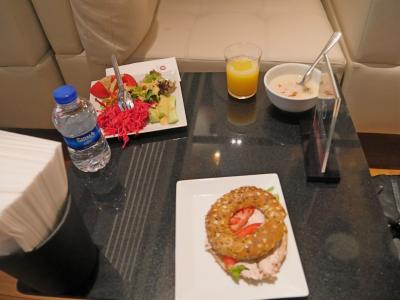 ラウンジはさすがターキッシュエアライン.軽食の種類は結構多い(スープもサラダもある),ソファもいいし寛げる.時々コックさんができたてのものを持ってきて入れるのもいい.しかしアルコールがない!ムスリムの国だが寂しいね.同僚はがっくりきていた