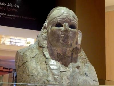 小さな博物館だが,なかなか逸品がある.あのベルリンやイスタンブールから帰ってきたスフィンクス像が見玉だが,銅石器時代からビザンツ時代までのこの付近の歴史がわかる博物館だ.非ヒッタイト部門と,ヒッタイト時代部門の二つに分かれている.やはりヒッタイト時代のものに逸品が多い.この神の頭部像はとてもすばらしい.それ以外にも牡牛の頭を持つ壺や獅子像,そして楔形文字や象形文字が素晴らしかった.入場料7TL