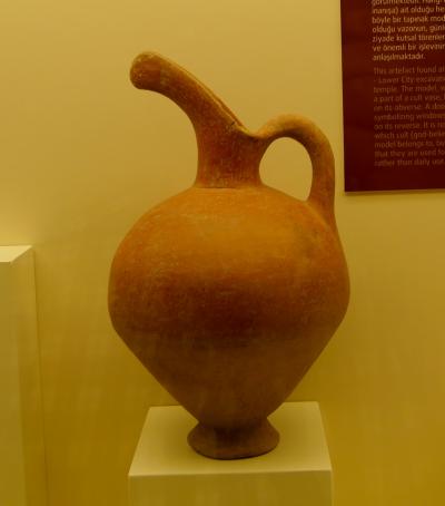 またハッティ時代の王墓はこの人々の文化の高さを示す.日本の弥生後期の墳墓はさらに2500年くだらなければならない.副葬品も立派なようだ.そしてこのハッティ人の文化がヒッタイト王国に受け継がれていったことが良くわかる.ここにあるのはほとんどレプリカ.ぜひ本物のあるアンカラのアナトリア博物館と,チョルム博物館には来年でもいってみたい.謎の民族ヒッタイトについてもっとよく知りたいと思う.Alacahoyuk(アラジャホユック)遺跡には付属の小さな博物館がある.アンカラや,チョルムの博物館に持っていかれなかった,水差しや壺などを展示.これだけを見ていても前青銅器文化からヒッタイト文化,そしてフリギア文化までの変遷が分かる ヒッタイトの水差しなどはなかなか独自な形をしていて面白い.水筒などユーモラスな感じまでする.- 旅行時期