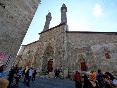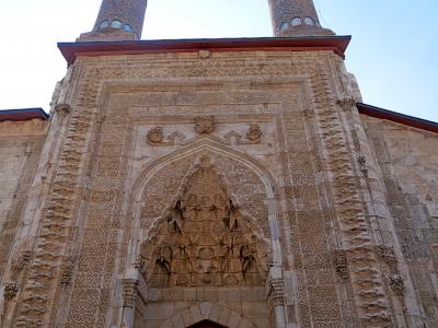 Sivasはアナトリア高原海抜1300mの高原の街.トルコらしい風景がある街だ.セルジュク朝,イルハン国,そしてオスマン朝と続く街.ローマ時代にはセヴァスティアと呼ばれていた街だ.長い歴史の中で,それなりの暗い歴史も持つ.1915年のアルメニア,キリスト教徒などの追放(虐殺には意見があるようだ).1993年にあの悪名高い「悪魔の詩」を翻訳しようとした人物を狙った狂信的な人々の(必ずしも過激派ではない)のホテル焼き討ち事件(35人死亡)などがあった.一方アタチュルクの独立戦争の契機となった(抵抗委員会の議長になった)重要な都市でもあった.イスラムらしい雰囲気に満ち溢れたところだ.中心はセルチュク公園.1271年に建てられたブルジエ神学校 セルジュクトルコ様建築の粋だ.ここがオスマンに占領されたのは1408年 この建物はモンゴル系王朝のイル・ハーン占領時代に建てられた.すでにイスラム化していた王朝だ.トルコ中のトルコだ.中にカフェがあり,ゆっくりと休むことができる.まずここで休んでから,中心街を回るといい.