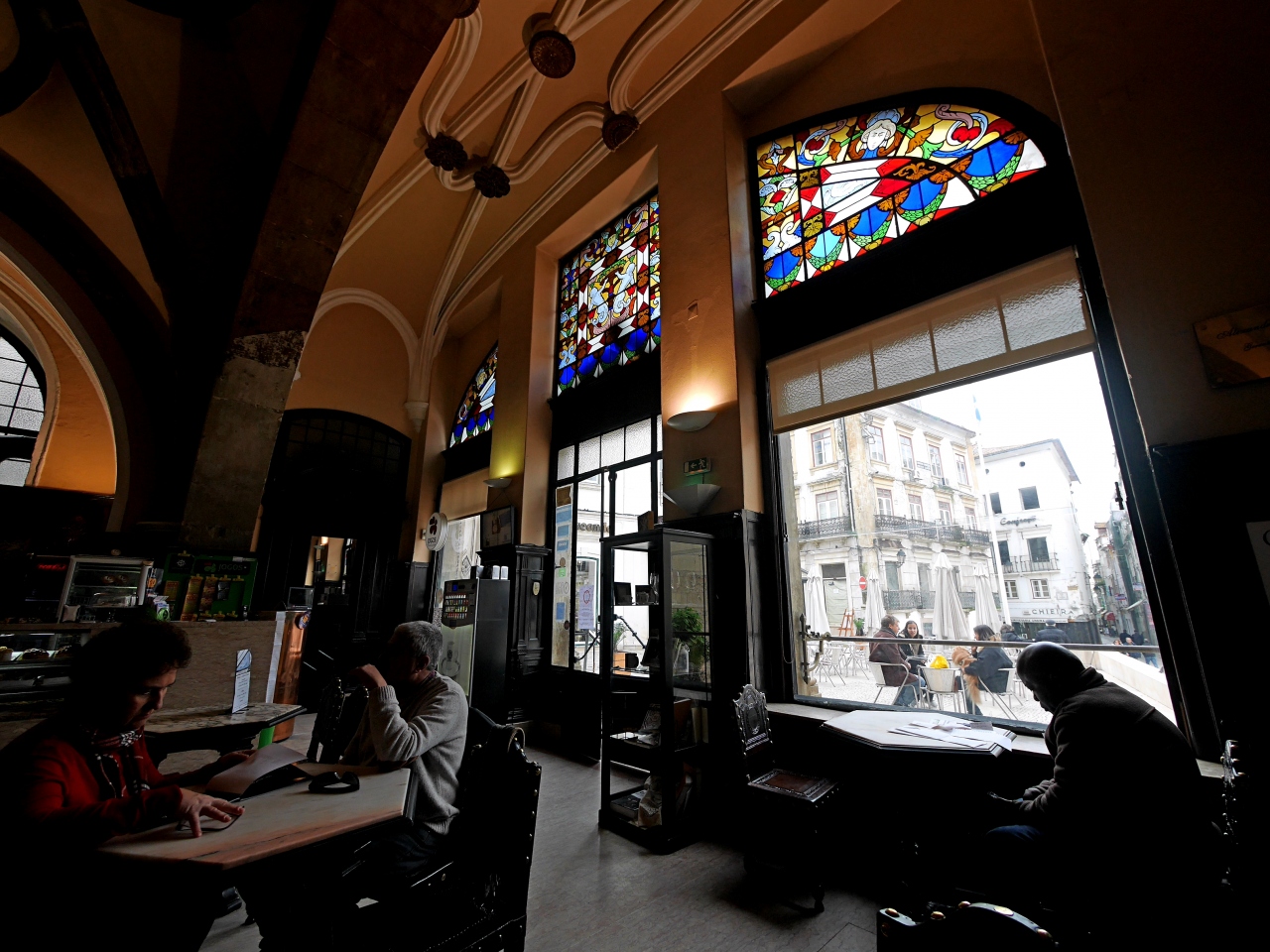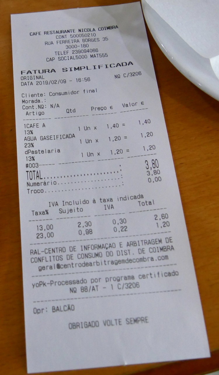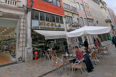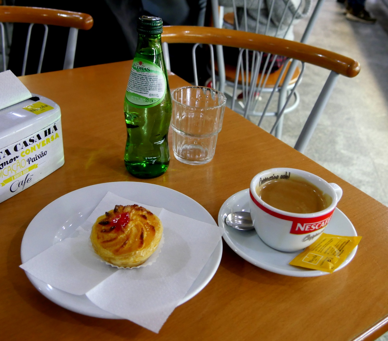 コインブラで最初に入るべきカフェは当然Cafe Santa Cruzだが,Ferreira Borges 通りの端にありすぎる.このカフェはちょうど真ん中あたり ウインドショッピングや観光で疲れたときにとてもいい場所だ エスプレッソ 1.4ユーロ 水と菓子パン 1.2ユーロと安い 店内はテーブルが多く,ゆっくりやすめる