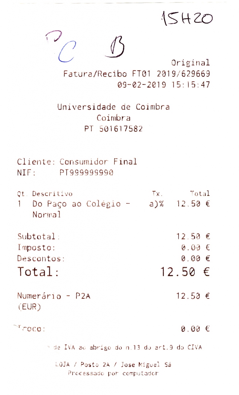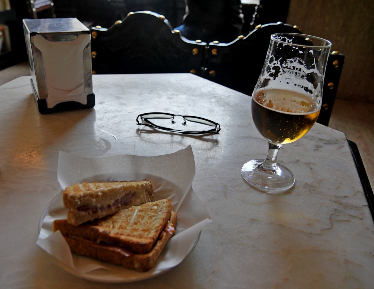 サンタクルス修道院の隣.1530年建造の教会を利用している重厚な雰囲気だ.カウンターで頼んでもいいし,注文もウエイターが取りに来る 重厚な雰囲気にふさわしい5つ星ホテルのレストランのウエイターの様だった.ビールとMixed Parma Ham Toasted 3.9ユーロ ビールは確か3ユーロだったと思う.チップをあげて8ユーロ払った.コインブラでは少し高めだが,素晴らしい雰囲気のカフェだ.