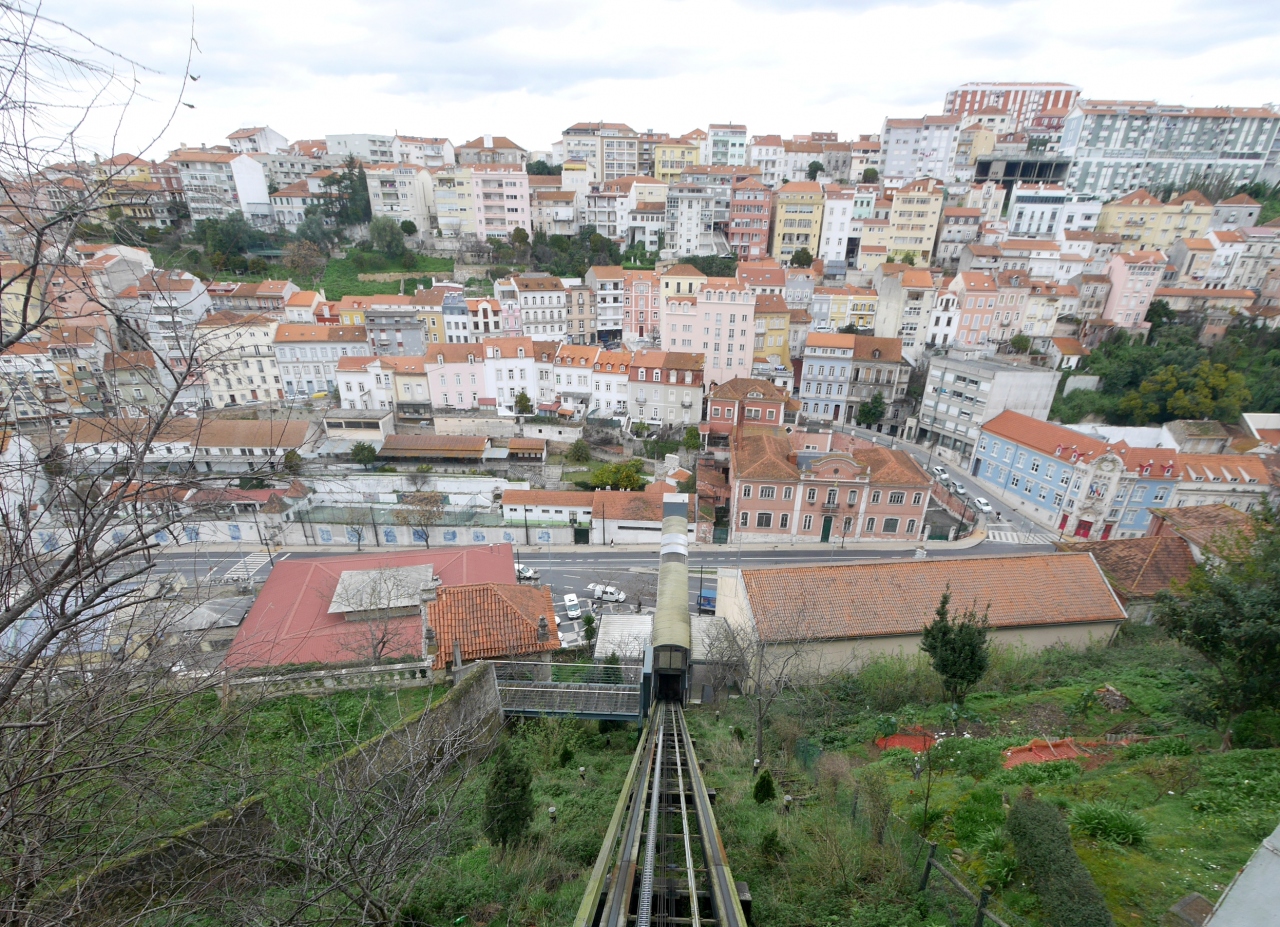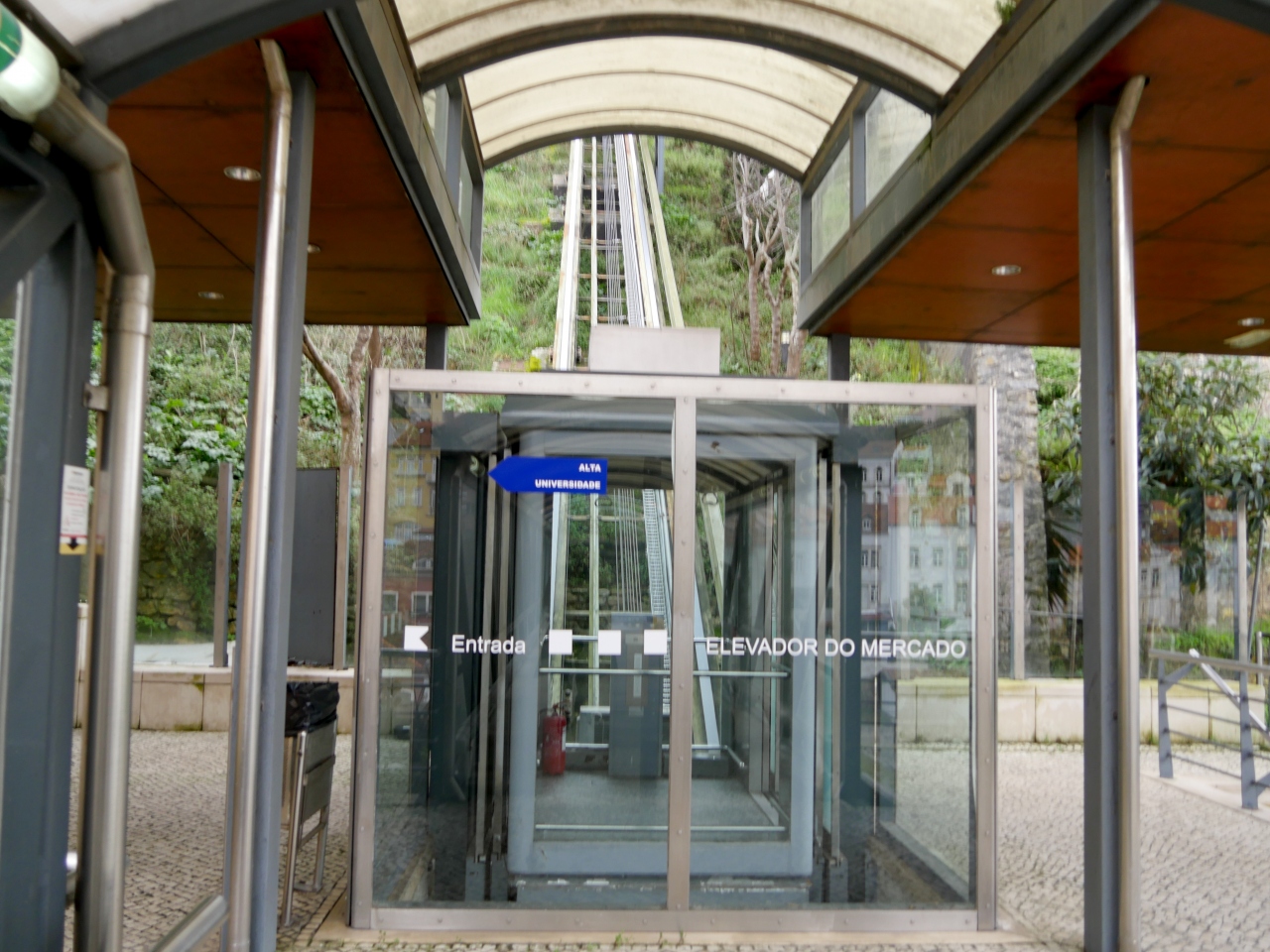 正式の名はマーケットエレベーター 隣がMunicipal D. Pedro V市場 コインブラの台所で丘の上に住む利用客用のようだ.1.6ユーロ.どこで乗車券を購入するのかとおもっていたら,エレベーターに乗務員さんが乗っていた.キャッシュで払うとレシートをくれる.最初はエレベーター,次はリフト.上から見たコインブラ北側の景色も抜群だ