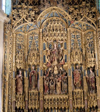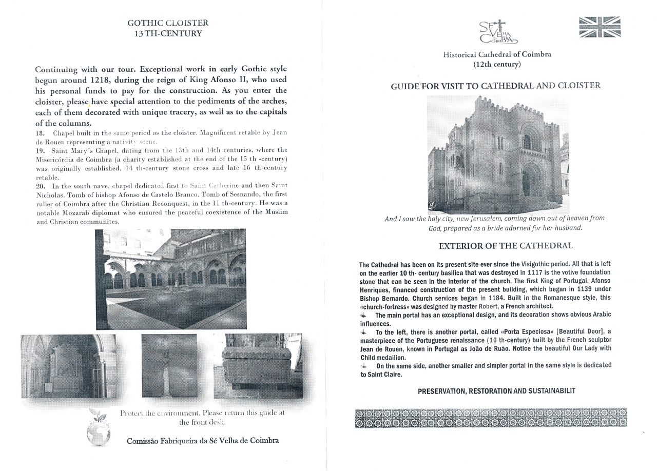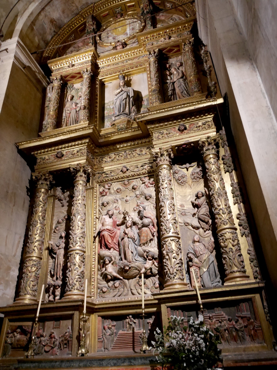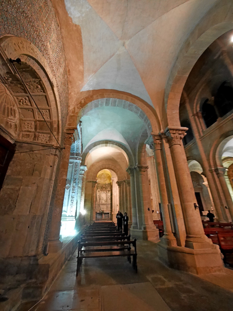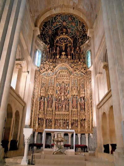 旧カテドラルに下りる.ロマネスクの教会だ.ここも主祭壇がすごい.宇宙的な天上にキリストが,中心にマリアがいる.15世紀の作品だ.回廊はゴシック様式としてはポルトガルで最も古い13世紀のもの.十分な修復がされていないがそれがまた古さを感じられてよい.この回廊のヴォールトは非常に形がいい.いい教会だ 必見