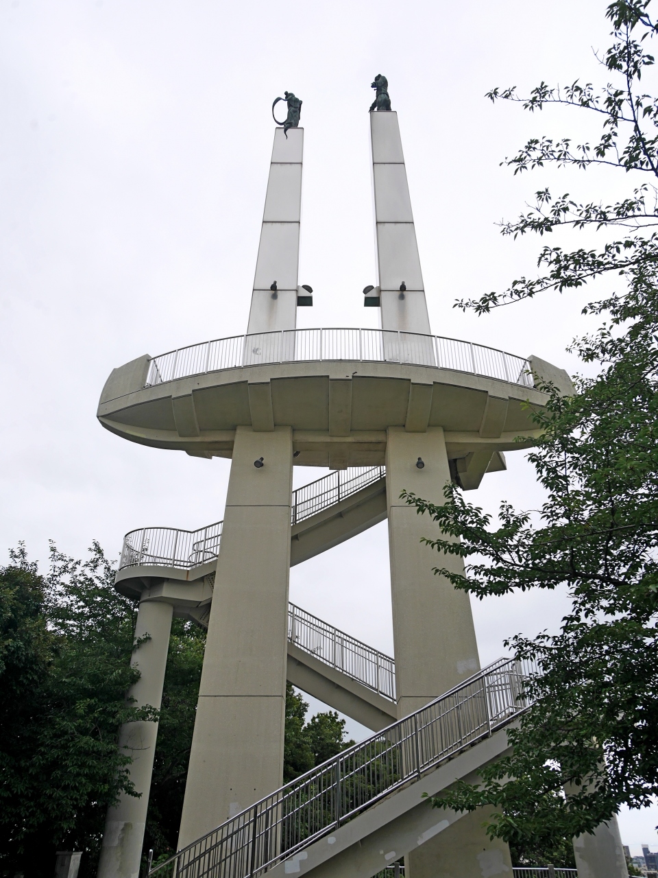 塔の名前「きみさらず」は、木更津市が市名の由来として広めている日本武尊と弟橘媛の悲恋伝説にちなんでいるそうだ.日本武尊の東征において、相模から上総に渡ろうとした際突然暴風が起こって海が荒れ、弟橘媛が身代りに海に入り暴風が収まったということからつくられ塔の上には二人の像が.1992年のふるさと創生事業で作られたとのこと.標高44mの太田山山頂に高さ28mの塔だが,途中11.7mまで登れる.ここからはアクアブリッジや横浜ランドマークがみえる.行った日は曇っていたが,冬の晴れた日に行ってみたいところだ