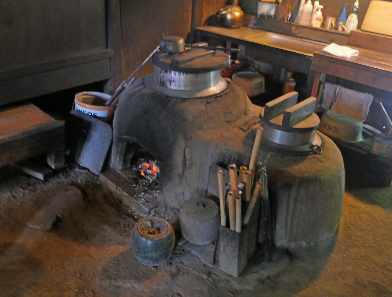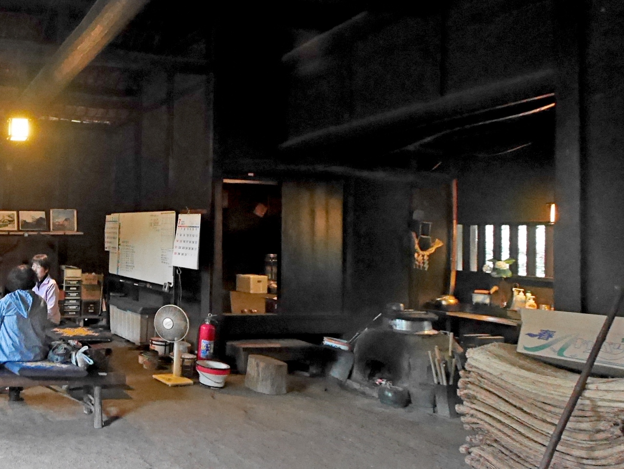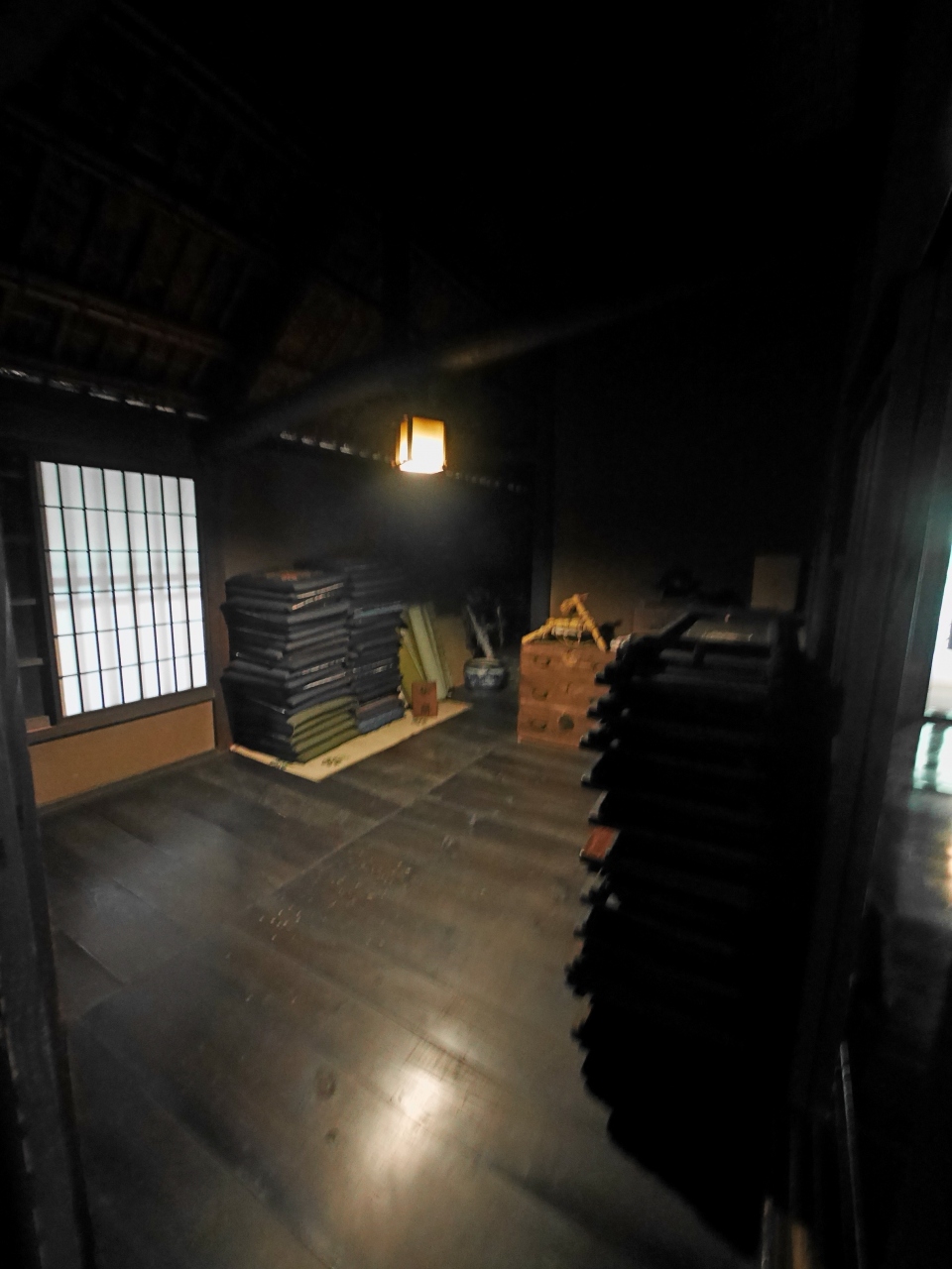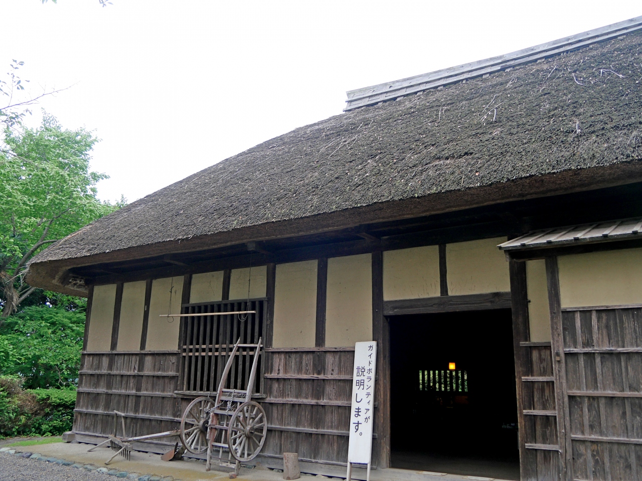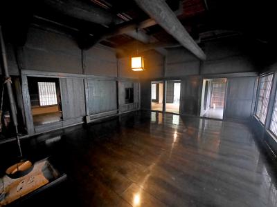 昔の豪農の家の様子がわかる.大きなひろまの板張りと,その上の梁がすごい.