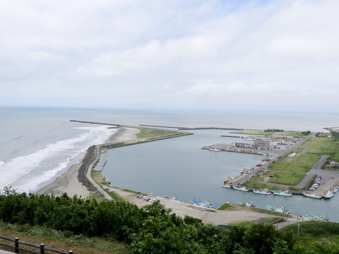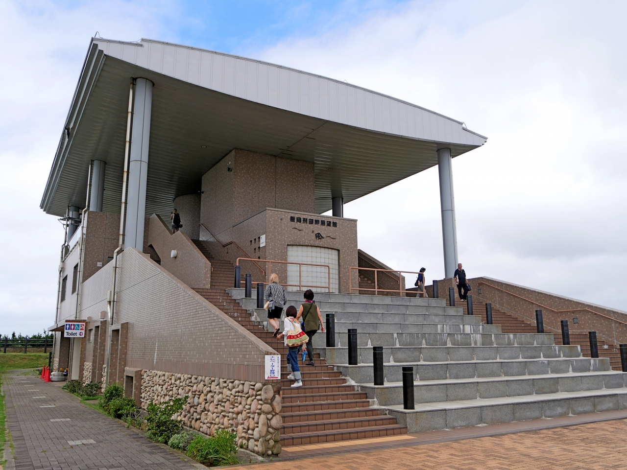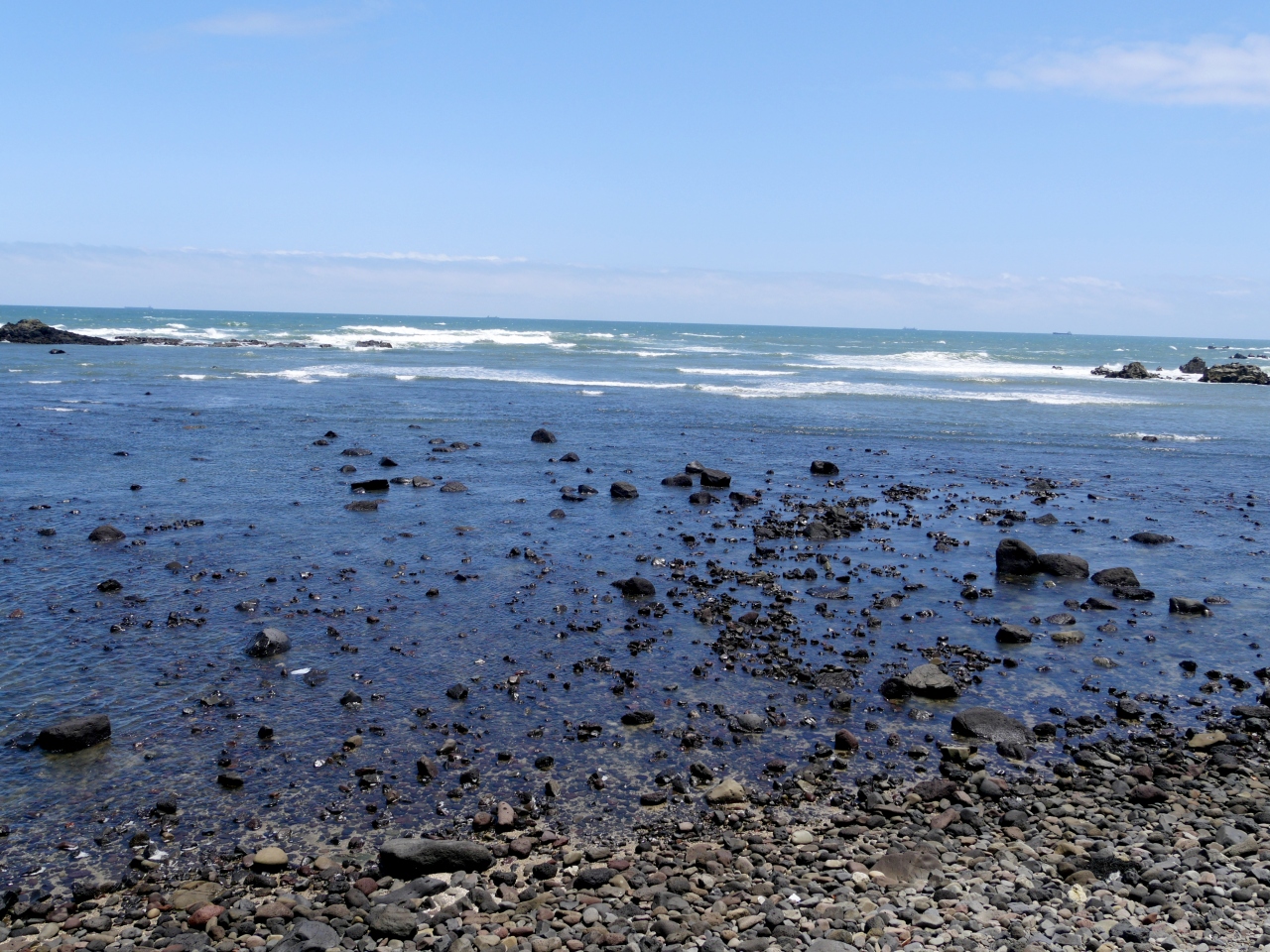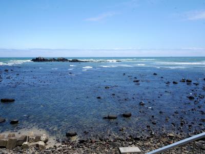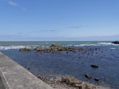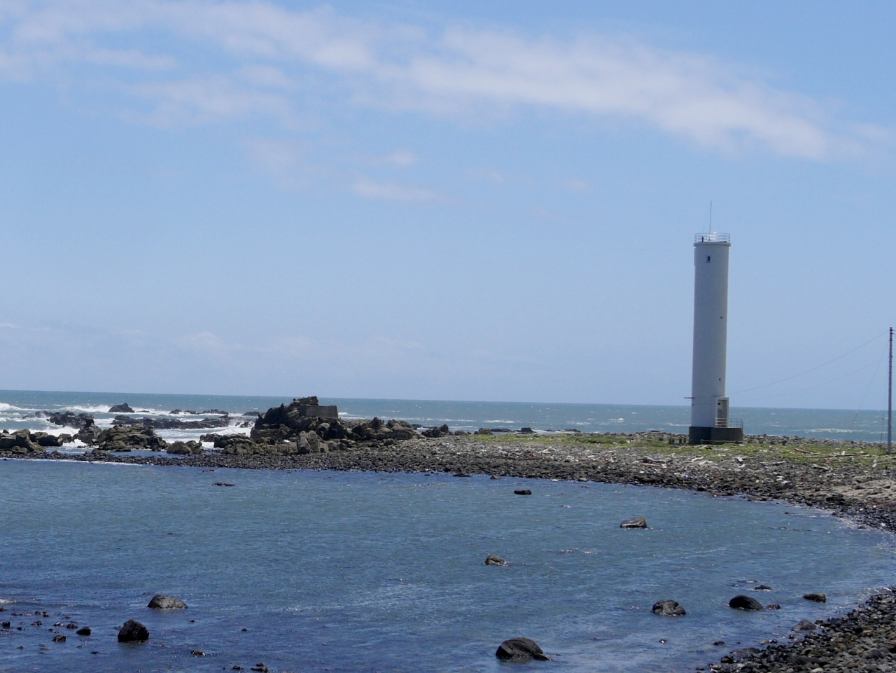 ここから銚子の古い地質に代わる そのため屏風ヶ浦の一番端になっている高台だ.飯岡刑部岬展望館~光と風に登る.九十九里の長い浜がよく見える.周りに風力発電も多い.刑部岬灯台は白亜のかわいい灯台だ.高さはわかるのだが,当然のことながら周りの崖のすごさはわからない
