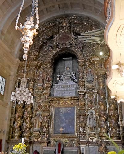 大学の裏側,国立マシャード・デ・カストロ博物館のとなりにあるカテドラル イエズス会のコレジオ付属教会として1598年に建設開始 完成には1世紀あまり要しているとのこと金泥細工の豪華絢爛な教会.金はなかなか教会にはなじまないものだと思うのだが.聖歌隊席の壁画がきれいだった.フランシスコザビエルの血と髪が入れられた聖箱があった.16世紀なので多分本当だろう..中は人が少ないのでゆっくり見学できる.便利な場所なので見学するとよい