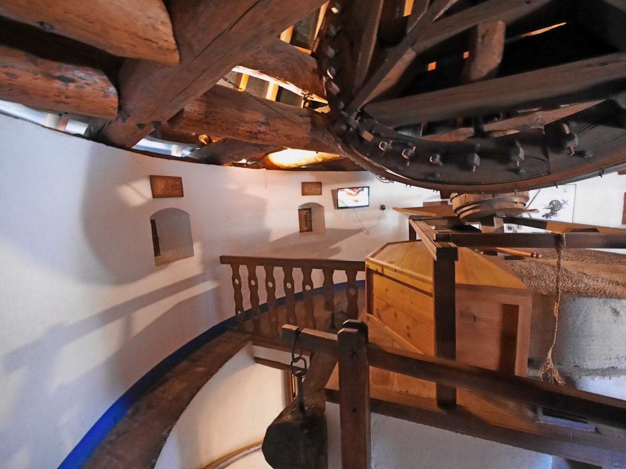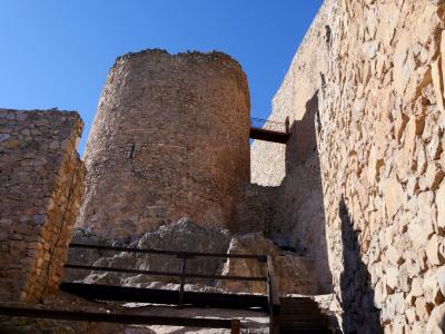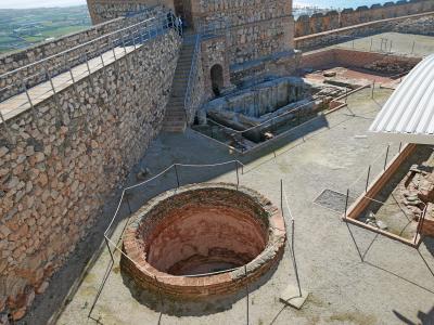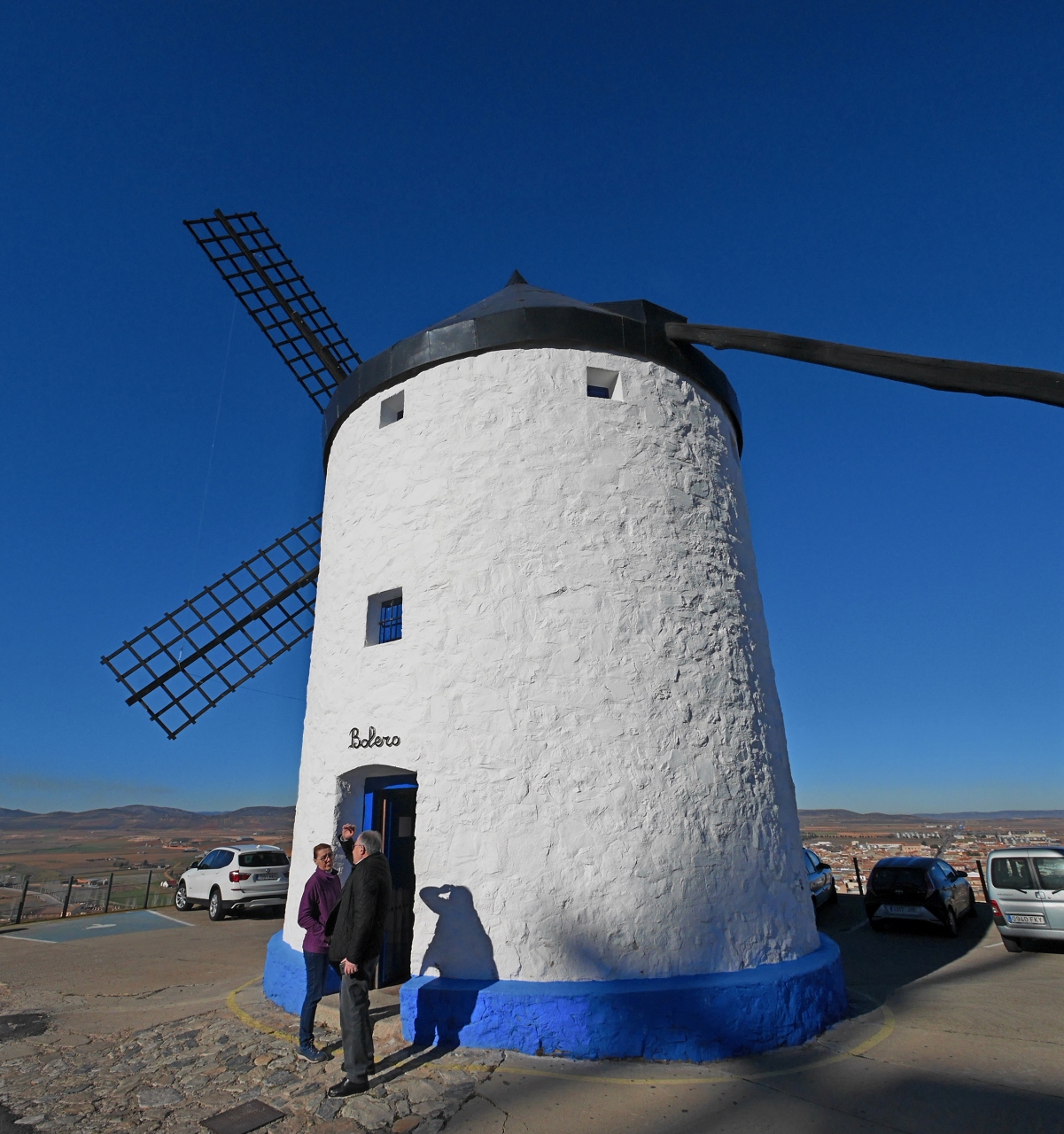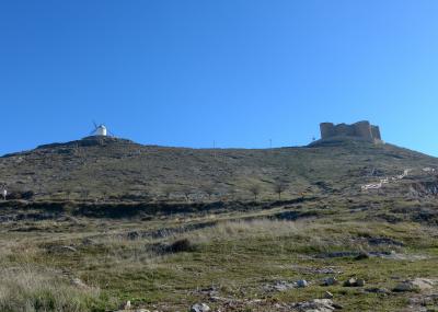 もとはイスラムの城だったが,12世紀1183年に聖ヨハネ騎士団が増強した城だ.1813年スペイン独立戦争にて破壊されたが,現状は良く復元されている 平原の中の高台にこれだけの城だったらちょっと落とすのは大変だろうね しっかりした水場もあったようだ 一番上の展望ができるところまでいく.3層になっている城だった.さらに円筒にわたる細い橋からの景色は最高だった 風車と城 まさしく絵になるところだ.最初の風車Boleroに観光案内所があり,入場料を払う.風車のみの入場料2.5ユーロ 城と市立博物館の共通券5.5ユーロだった.