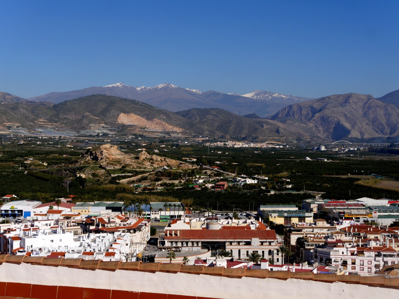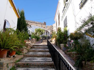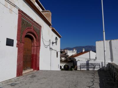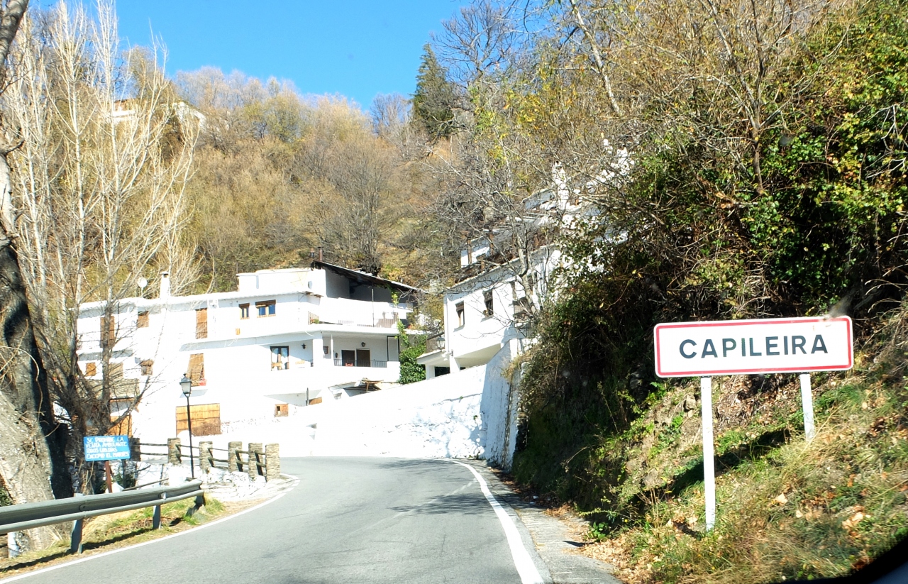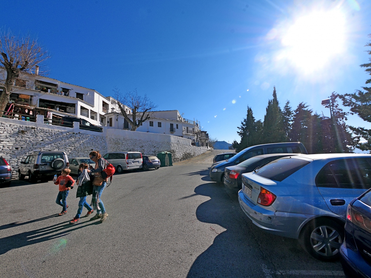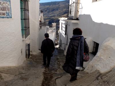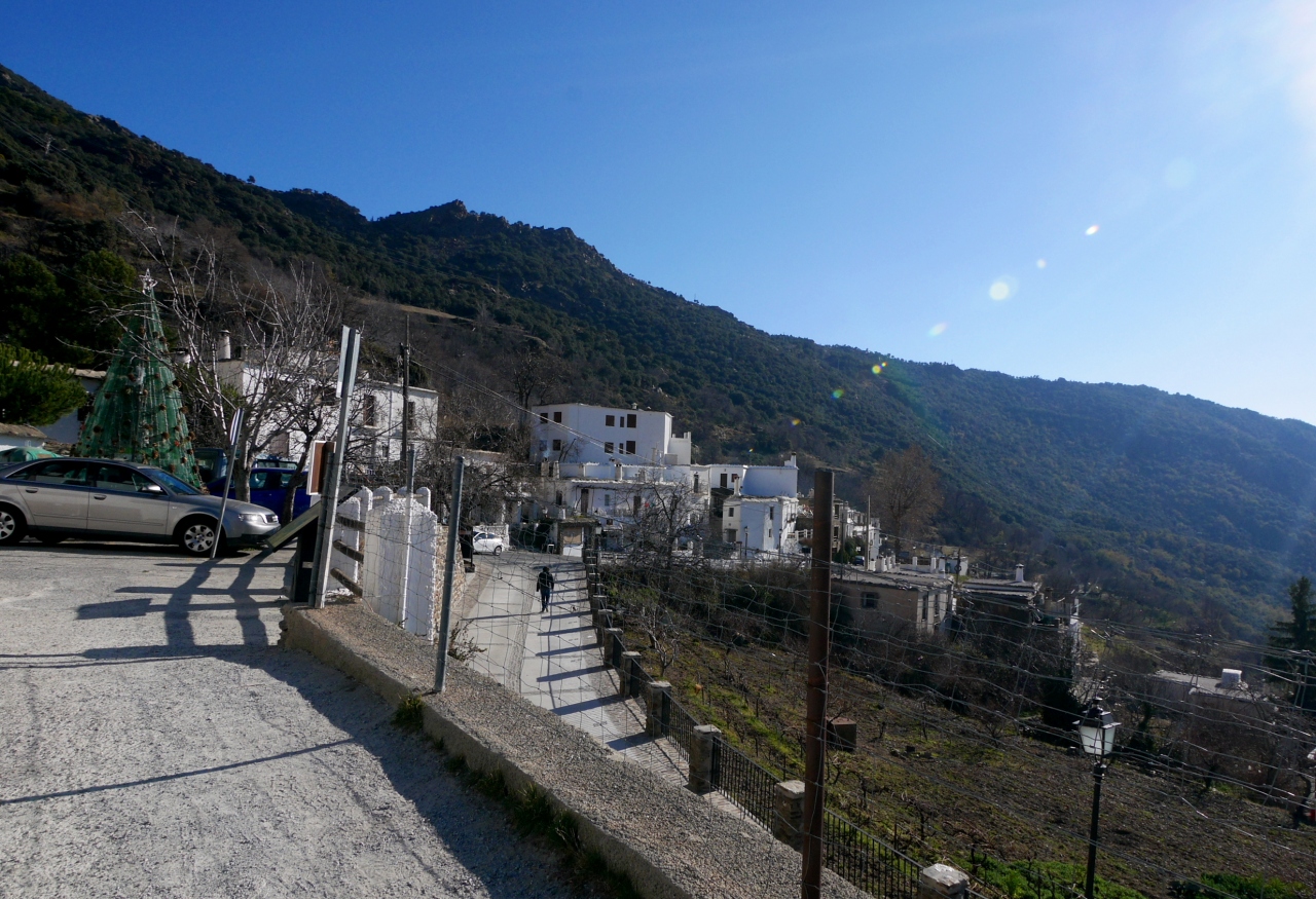 標高1420m 人口500人 1月3日の訪問だが南側斜面のためか雪などはない 暖かい 気温は12-13度と思う まさしく天上の白い村 白い壁が続くのはPampaneira以上 まあPanpaneiraでは特産のカーペットを所狭しと飾っていたからだが.Pampaneiraより人口が多い割には狭い村だ.下っていくとすぐに村の端に そこからは壮大な眺め
