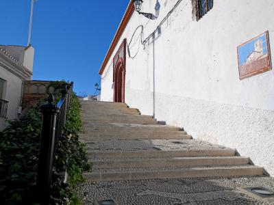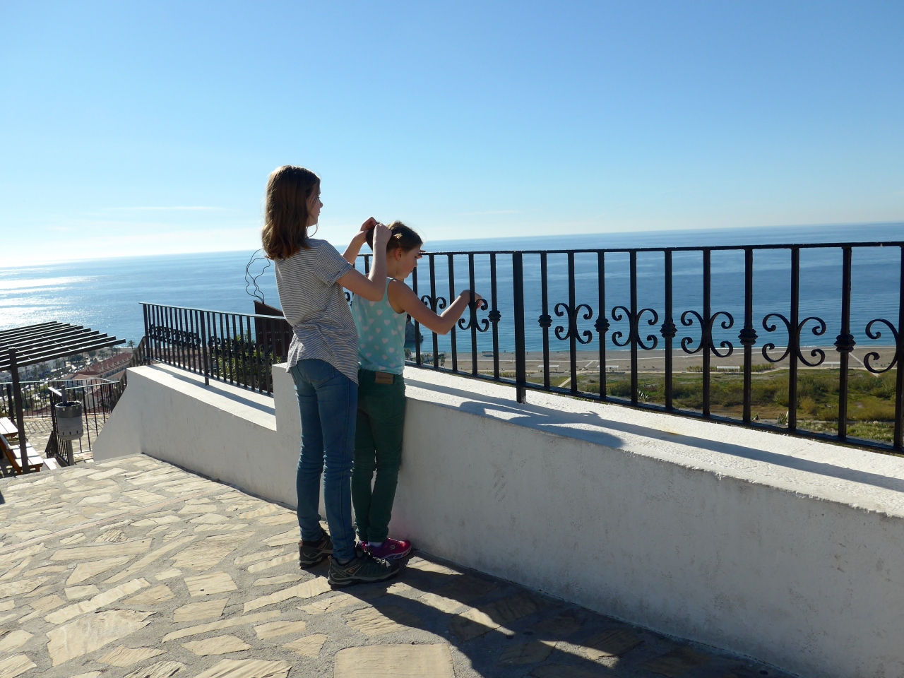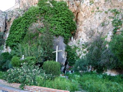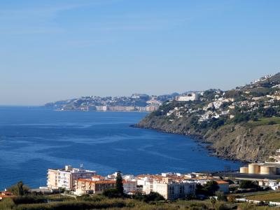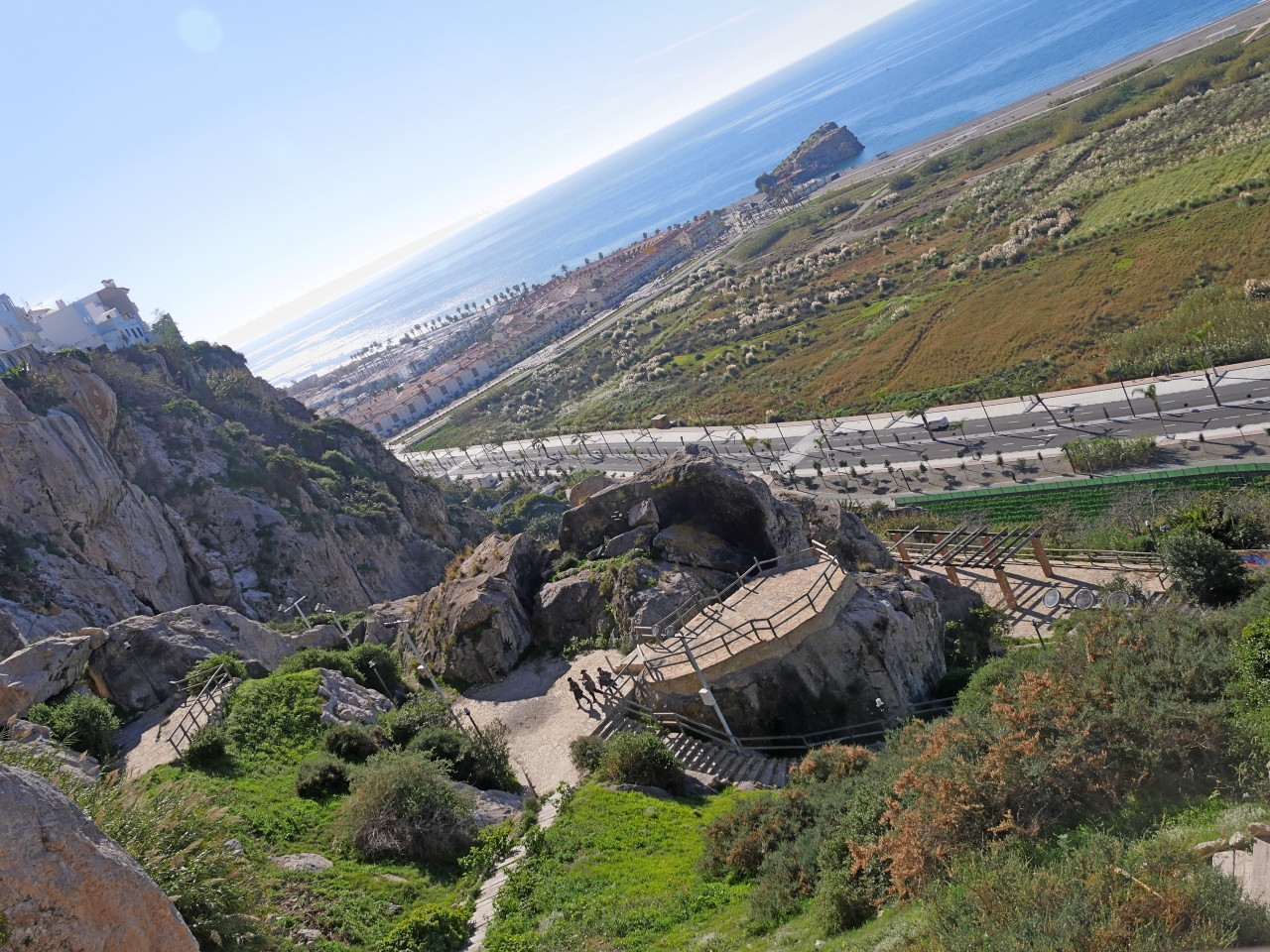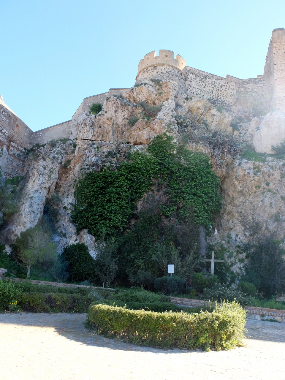 城の下の展望公園へ.Paseo de la Frolesという ここからのAlmunecar側の海がきれいだった.またSalobrenaの街とシエラネバダ山脈もよく見えた. ルルドもあり,またサロブレーニャ城も下からよく見える