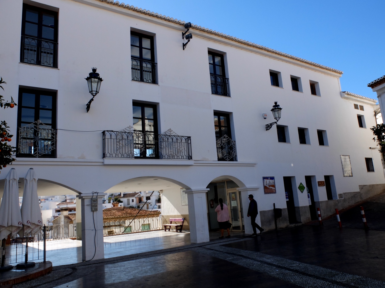 観光案内所は,バス停のそば Amarguillo川のほとり,スペイン広場に行くアルコ通りの入り口の少し東側にある ここで町の地図をゲットしておくといい 少しわかりにくい地図だが,それなりに役に立つ.スペイン広場は庁舎や学校,市立博物館の建物など16-18世紀の建物で心地よい広場だ.