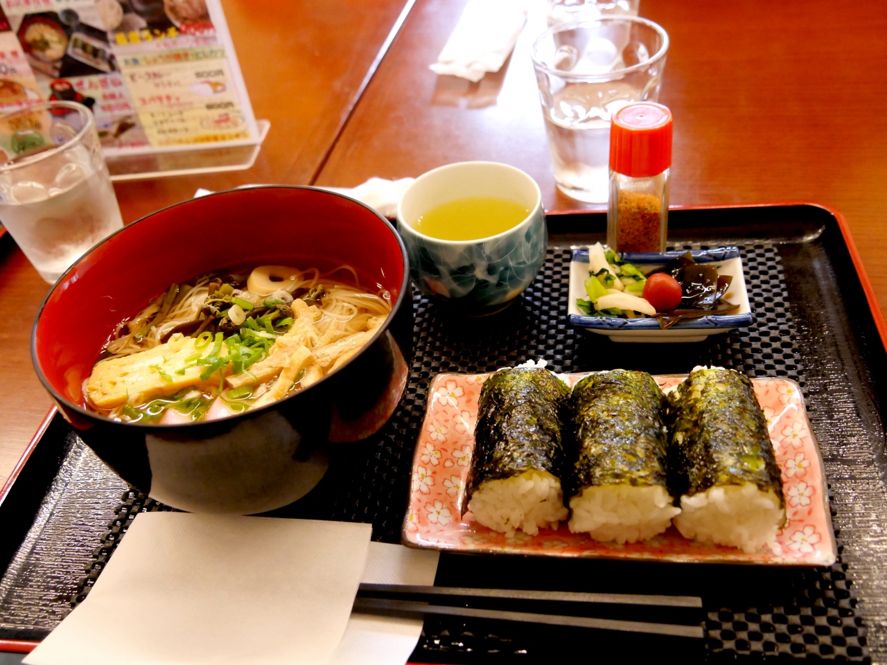 わたしは温にゅうめんセット 800円,後の人たちはホットケーキセット550円,でもこのセットにゅうめんがあたたかくたべやすくてよかった.寒い冬にはいい.おにぎりがついているので,ほどほど満足できる.外国人などにはホットケーキもいいようだ.コーヒーも水準のおいしさ 店の人も親切だった