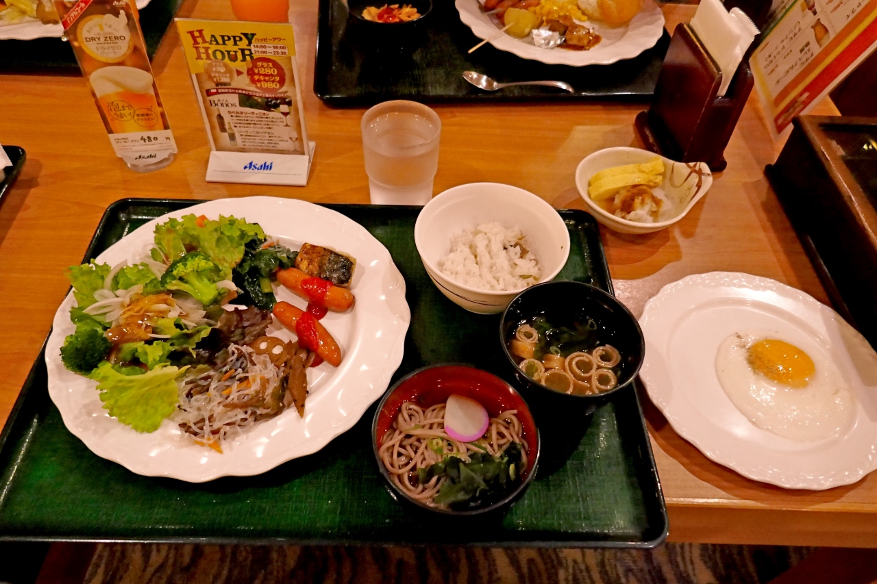 写真には撮らなかったが焼きカマンベールチーズ,ソーセージ盛り合わせ,焼肉サラダ,大海原の盛り合わせなどが美味しかった.なかなかいいレストランだった.朝食も食材は高級ではないが,ともかく種類が多い.外国人も食べられるものが多く,この料金では安いと思った.わたしはおすすめ.今度から奈良に来たらここにしよう- 旅行時期
