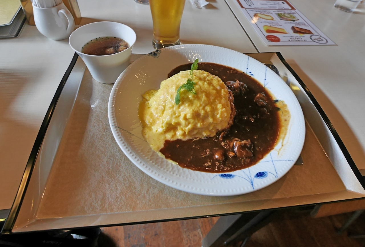 奈良国立博の地下1階のレストラン.通常特別展の際はめちゃくちゃ込んでいるが,通常展のみの時は穴場のレストランになる.東大寺大仏殿付近のレストランは昼時非常に混雑する.近鉄奈良駅中編まで降りるのも大変だ.特製デミグラスソースのふわふわオムライス1200円 中のトマト味もいいし,この卵のふわふわ感はいい.とチーズケーキセットかショコラベリーケーキセット850円 なおこの地下1階には無料で入ることができる