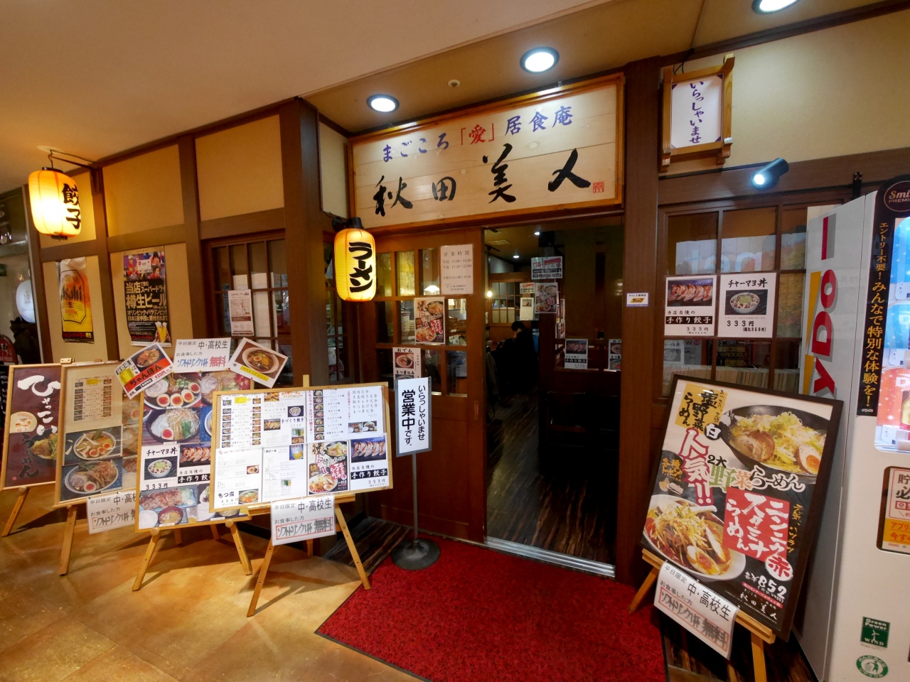 アルヴェの2階のお店 休日のためか結構込んでいる 若者も多い.醤油らーめん 大盛り 920円 ねぎ170円 ごま風味が効いた醤油味 悪くはなかったが少し値段が高いね 餃子も5個で360円.秋田駅前なので東京並みの値段だ.しょうゆラーメンは食べやすい典型的なしょうゆラーメン,餃子は具の味が良くしておいしかったが.
