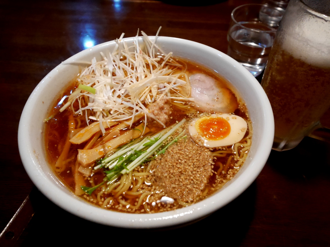 ごま風味が効いた典型的なしょうゆラーメン 餃子は美味しかった