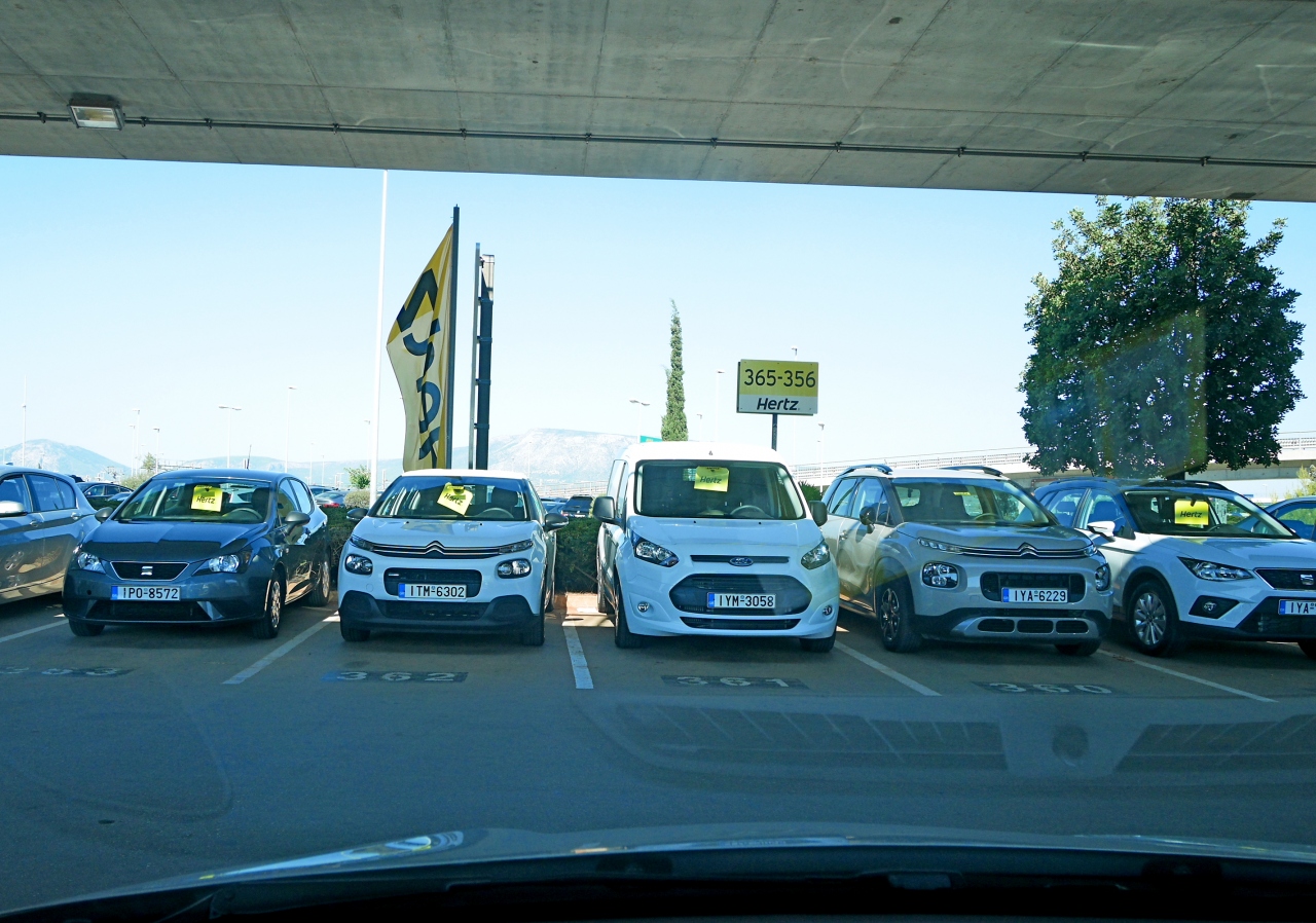 空港で到着ロビーを右に行き,外に出た高架下にある.ここから空港外に出るのは便利 帰りはRent a Carという標識を慎重にmて,通り過ぎないこと 私は通り過ぎて大変面倒なことになった.駐車中にぶつけられてバンパーに傷がついたが,担当者にやはりフロントバンパーについて問われたが,「知らない.駐車中に何者かにぶつけらた」といったら不問となった レンタカー代はギリシャめちゃくちゃ高いが,この点はいいと思う