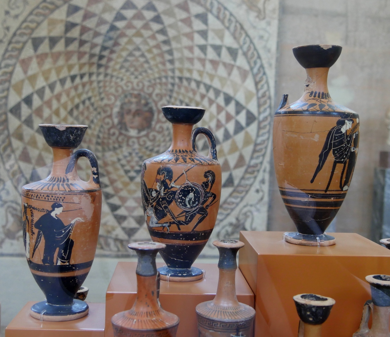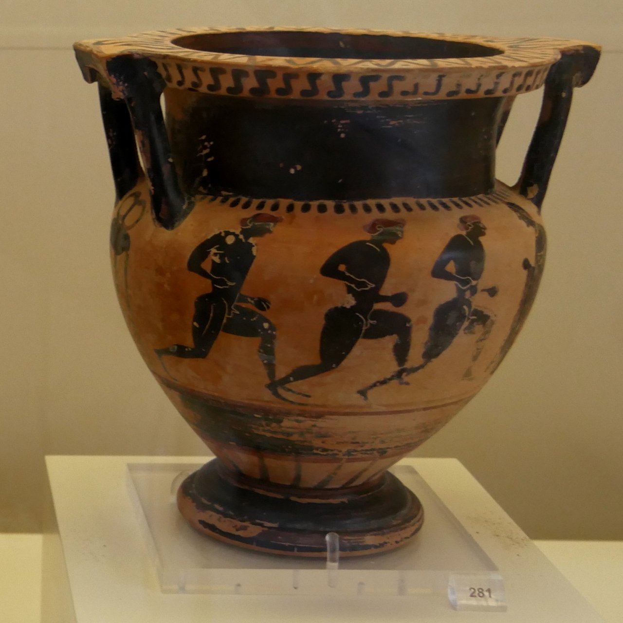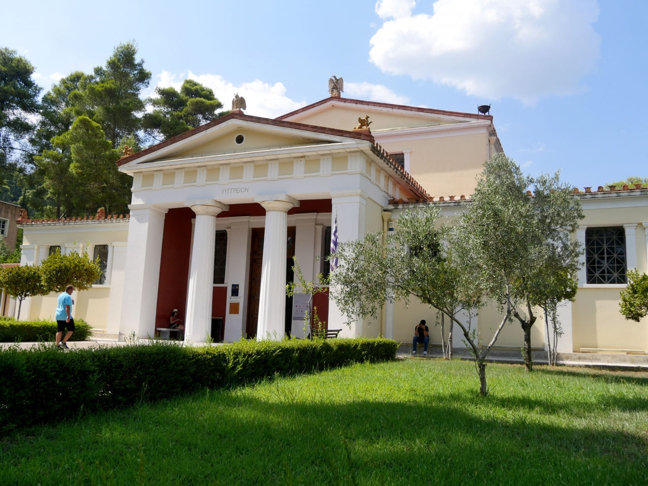 こでは古代オリンピックの歴史と,競技者を描いた壺やモザイクなどを集めている やたらと明るい博物館で,かつガラス張りなので反射がひどくていい写真は取れなかった.しかし壺や瓶,モザイクの躍動するアスリートが,ポリスの代表として勝負に挑み,勝てば賞賛された歴史を垣間見ることができた.考古学博物館だけでなくここも見学すべき