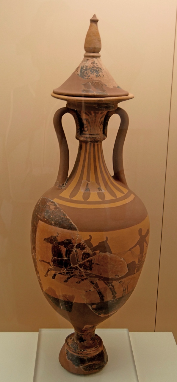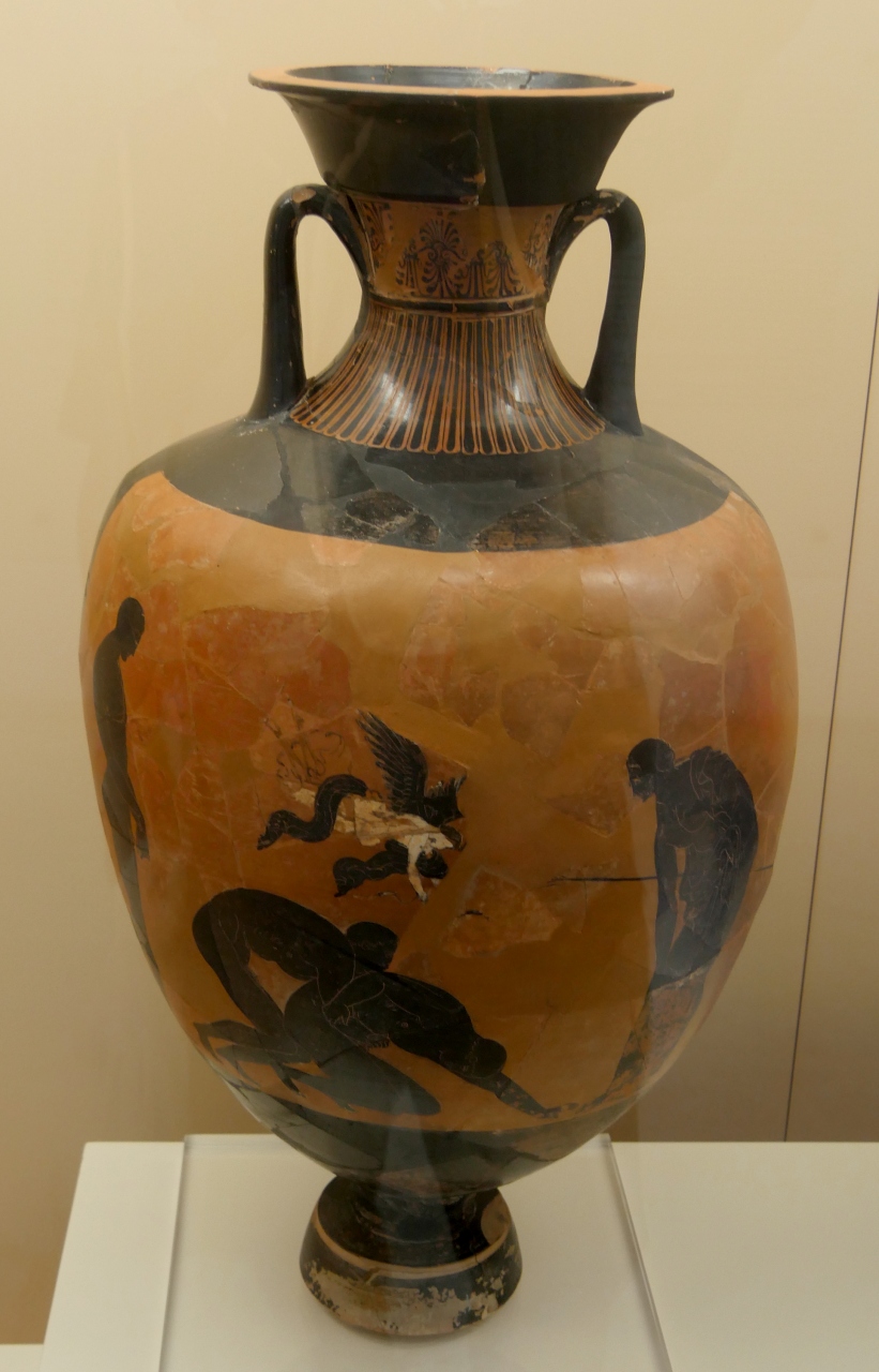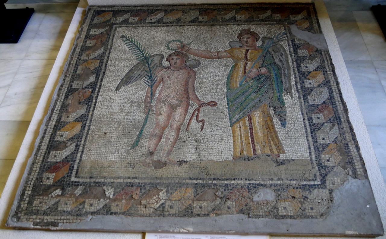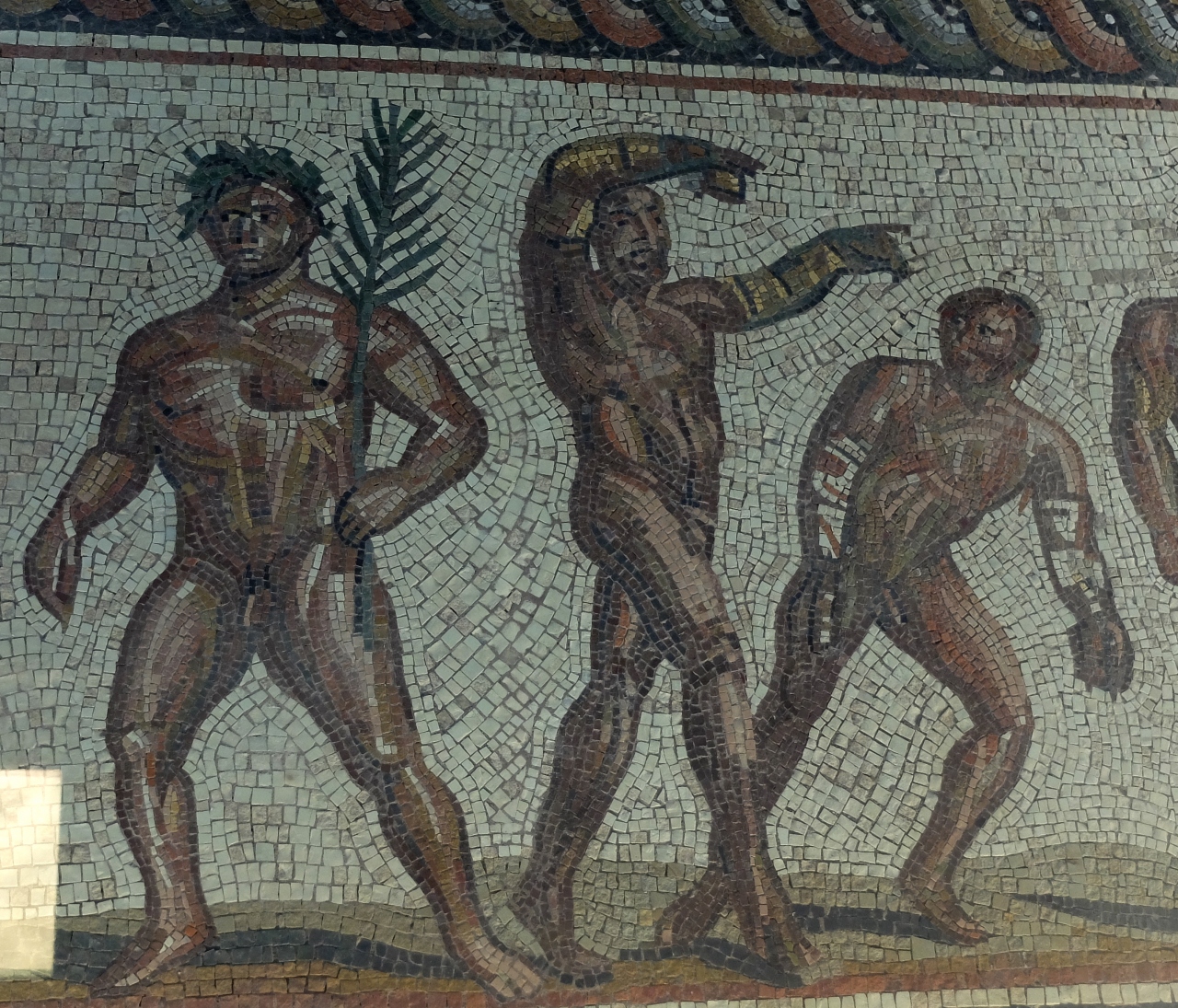 こでは古代オリンピックの歴史と,競技者を描いた壺やモザイクなどを集めている やたらと明るい博物館で,かつガラス張りなので反射がひどくていい写真は取れなかった.しかし壺や瓶,モザイクの躍動するアスリートが,ポリスの代表として勝負に挑み,勝てば賞賛された歴史を垣間見ることができた.考古学博物館だけでなくここも見学すべき