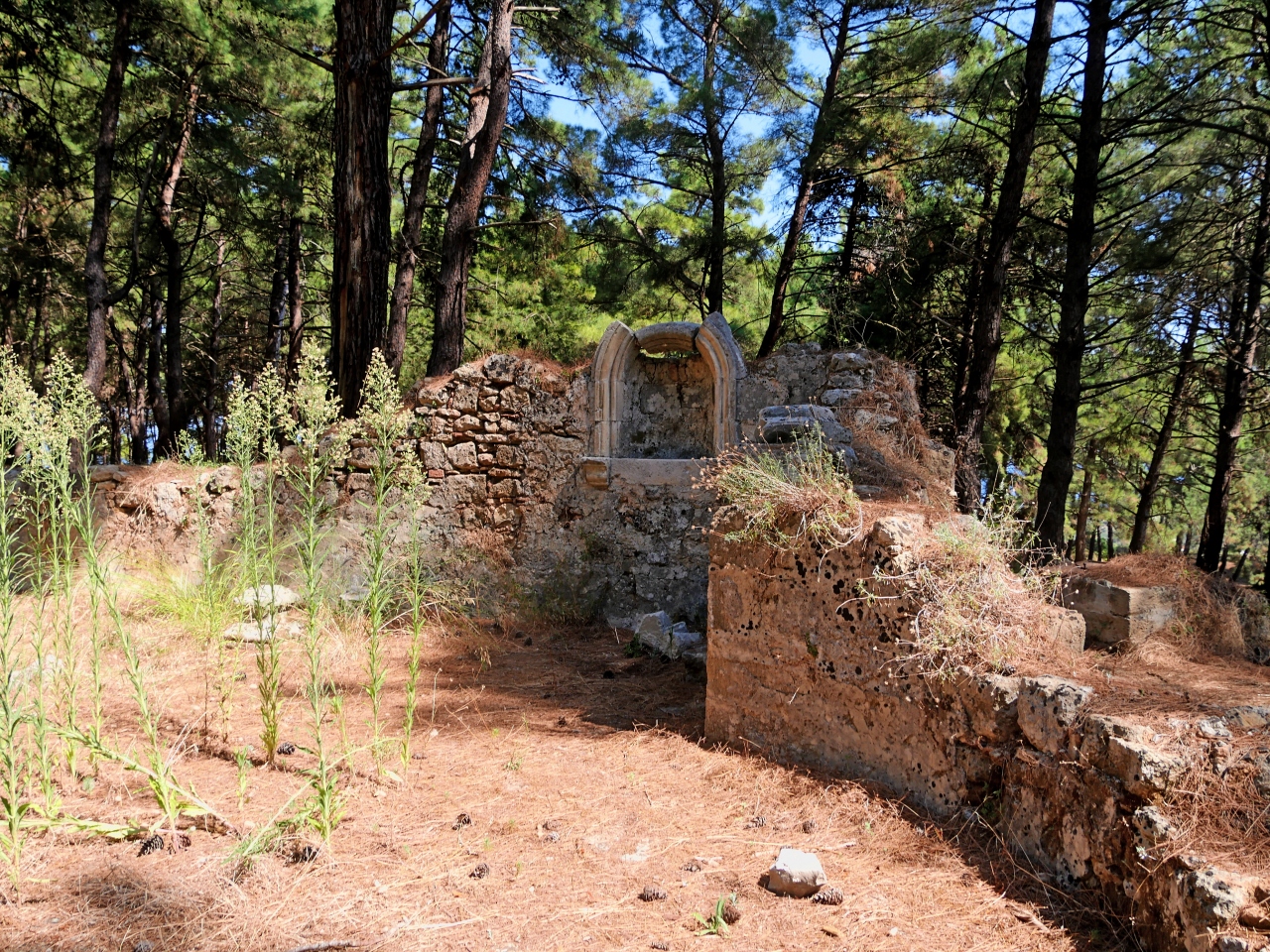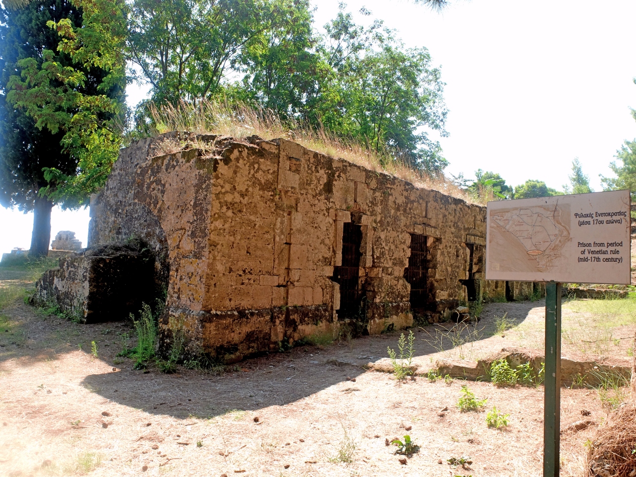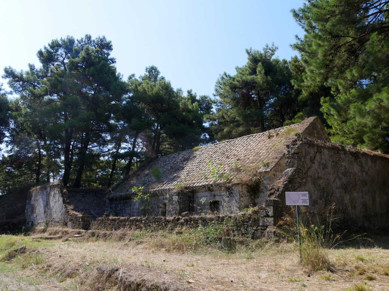 ザキントスの町中を通り,山の上,Bohaliとう所にあるヴェネチア時代の城(要塞)見学.もとはギリシャのアクロポリスやビザンチン帝国の砦跡に建てられた.1646年に建設 そ 1812年に大英帝国がイオニア諸島を引き継いだとき,城は再建され,兵舎やパウダールーム,家屋を含む新しい建物が建設されたとのこと.その後1953年の地震などにより損壊されている.今は静かな松林の中にベネツィア時代の建物と大英帝国時代の建物跡が残る.いくつかの教会跡もある.ヴェネツィア時代のパウダールームと牢獄がよく保存されている.散歩がてら見てもいい遺跡だ.私たちは車で来たが,歩いてくると結構の高台なので一苦労するだろう.